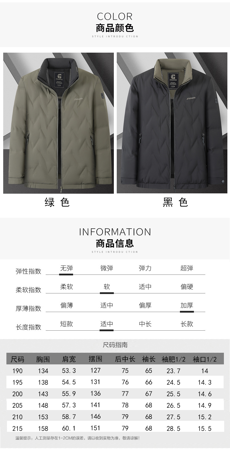 【特大码】【新款DGD】大依优型大码立领羽绒服夹克外套休闲胖子大码男休闲宽松加肥加大上衣