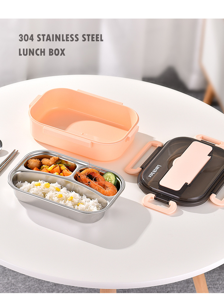 春艺304不锈钢双层快餐便当盒密封防漏饭盒 学生上班饭盒大号-W仓