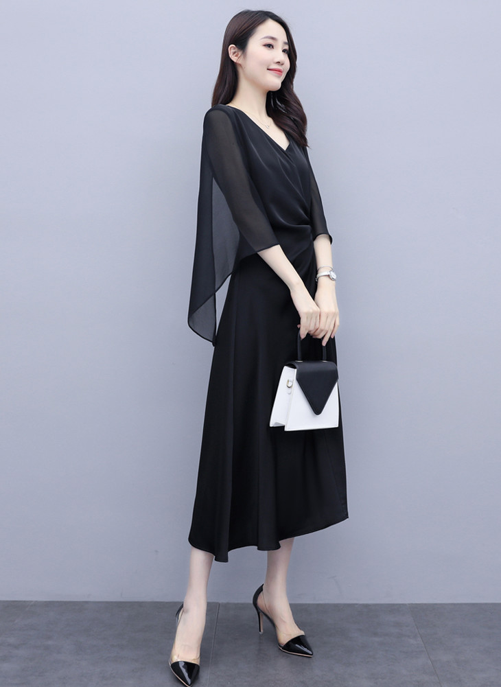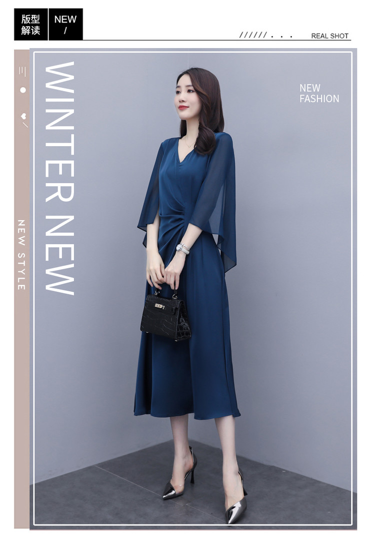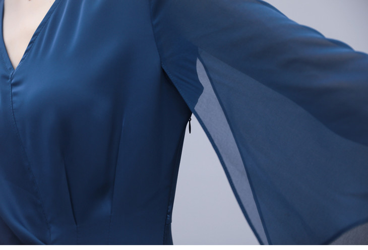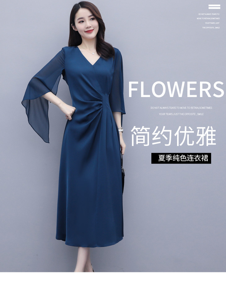 简约优雅,气质干练时尚雪纺拼接连衣裙HR-LMYS326