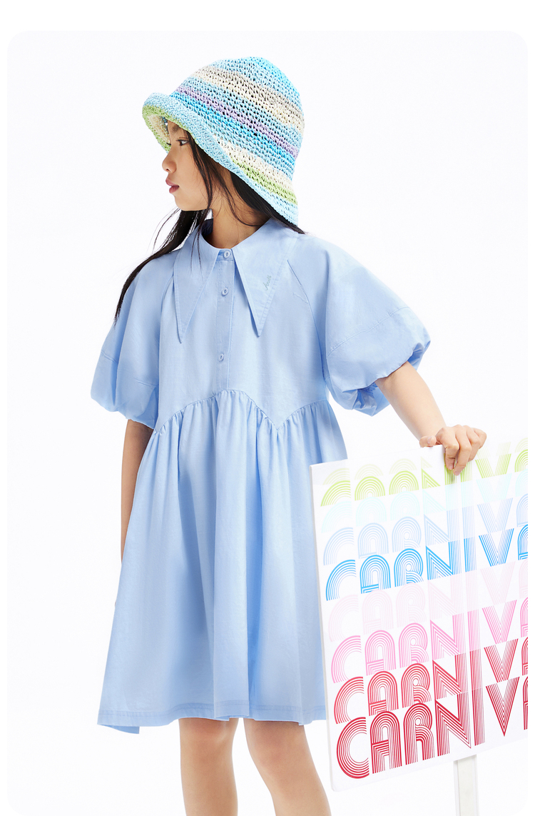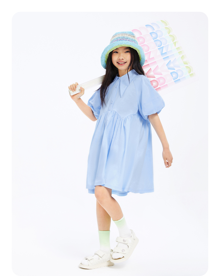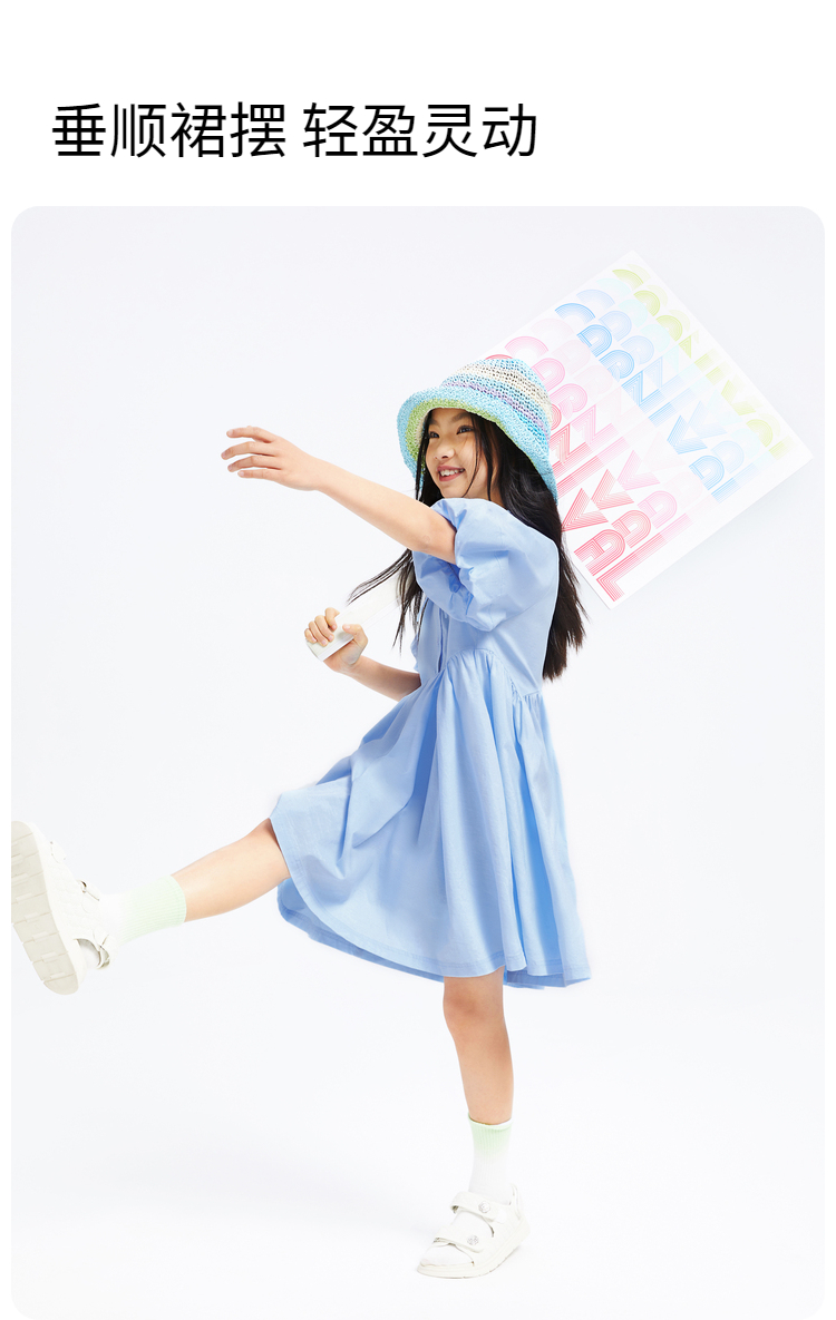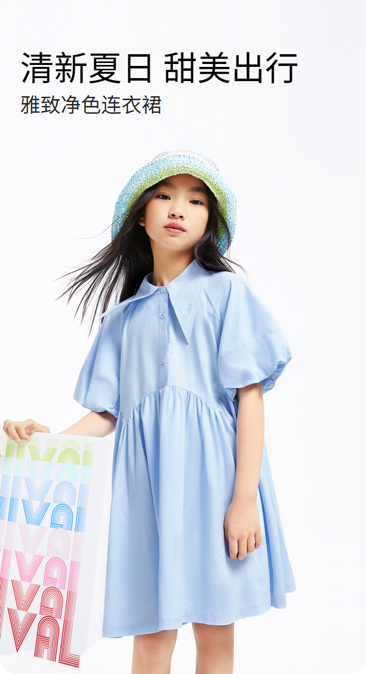 女童公主连衣裙夏新款纯色百褶裙子安奈儿童装EG423113