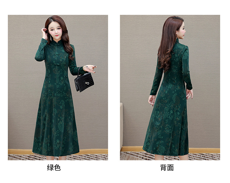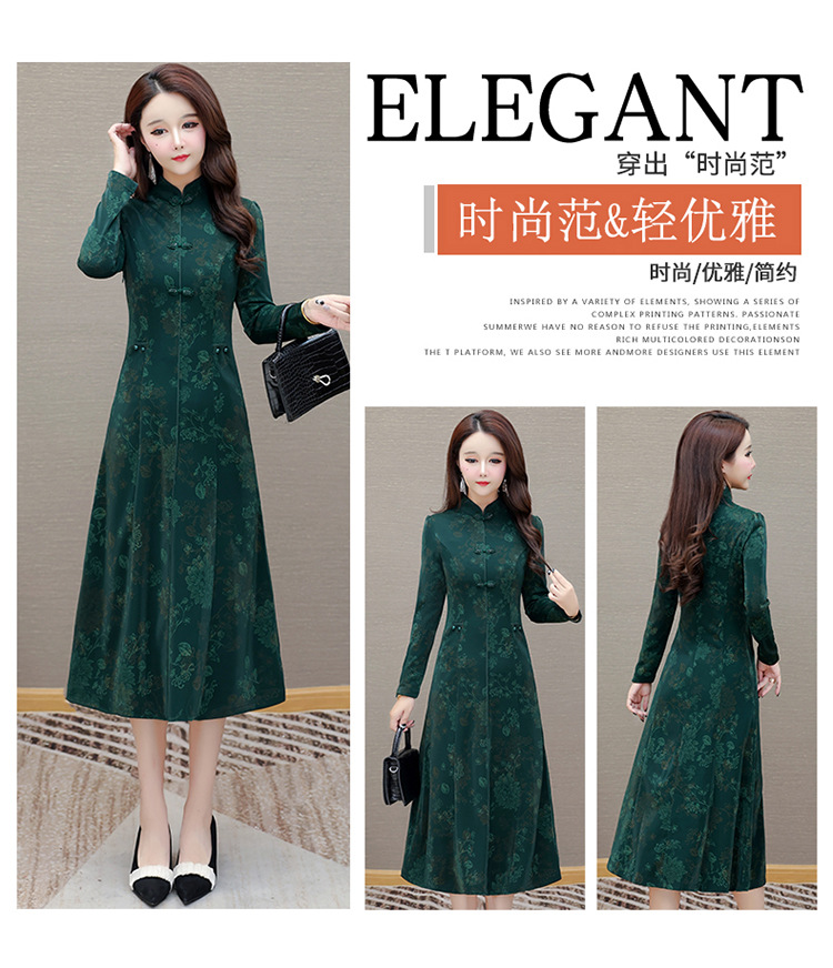 QYM 1315C521-Y妈妈印花大码连衣裙气质修身改良旗袍裙