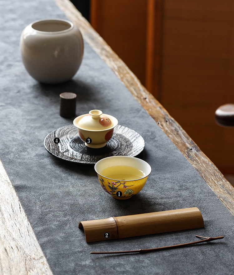 茶香记 古帛扒花喜上眉梢碗杯(帝王黄)110ml陶瓷主人杯茶杯品杯