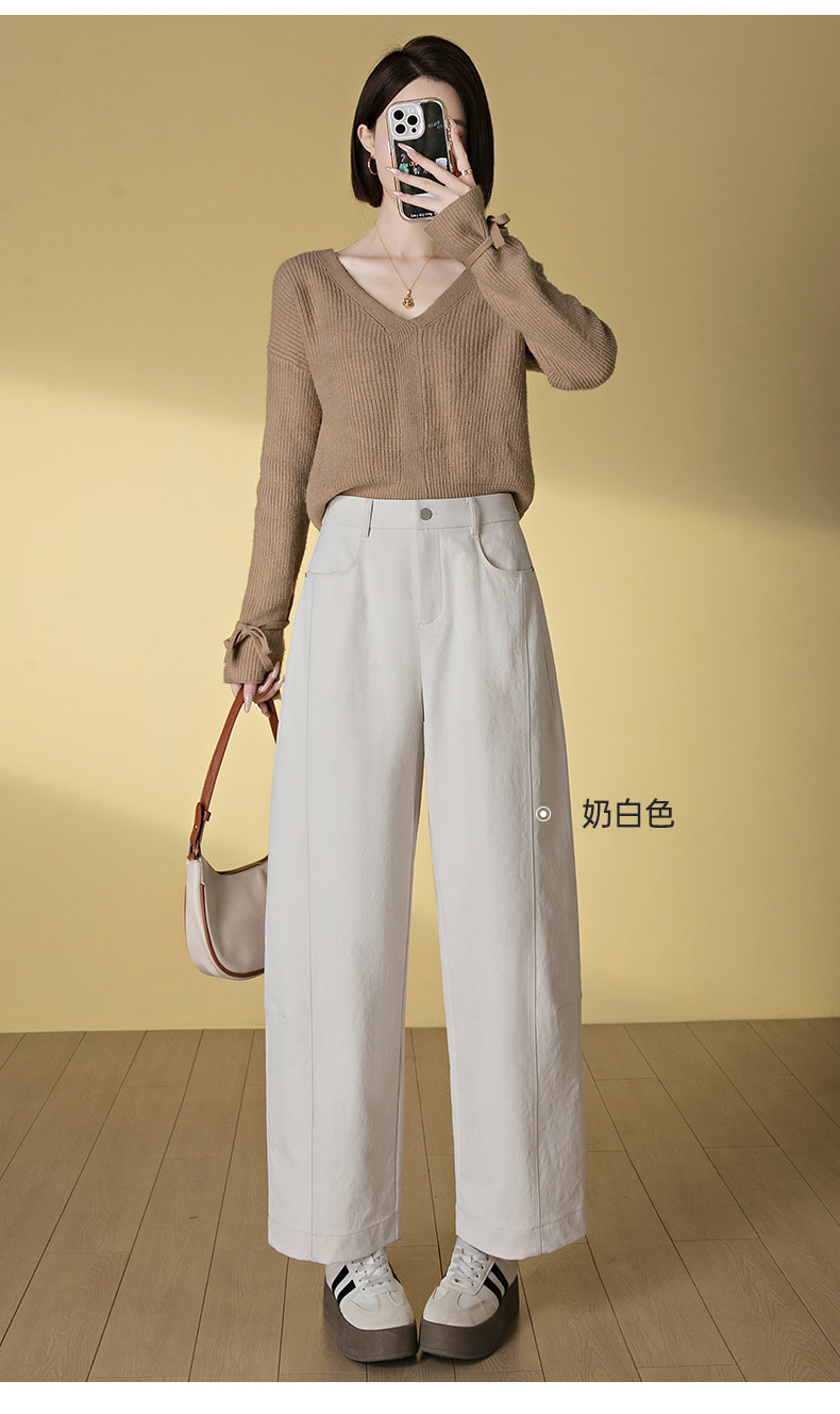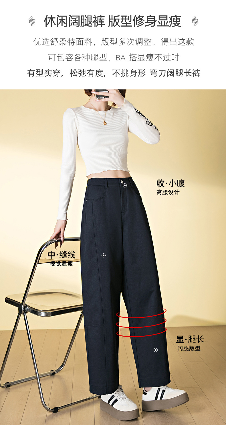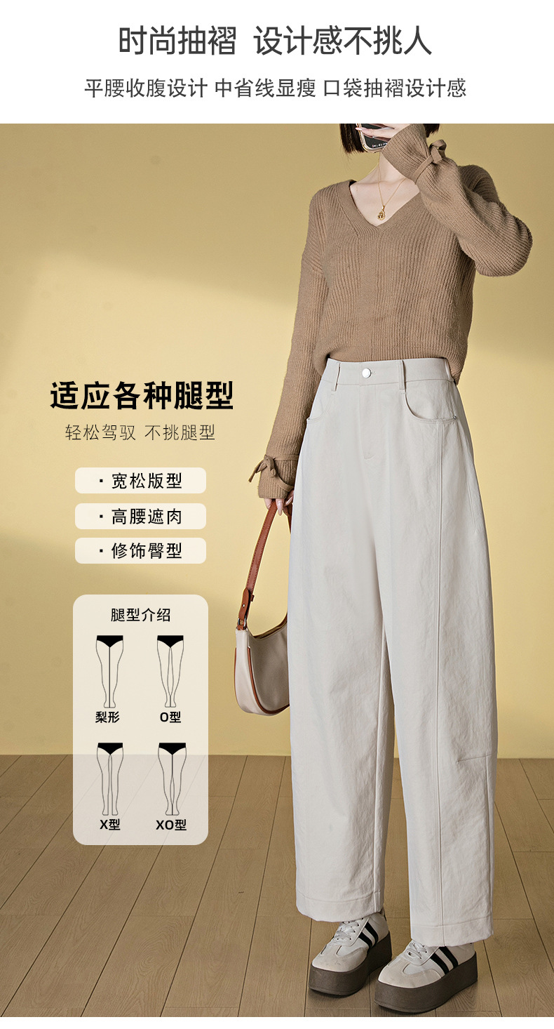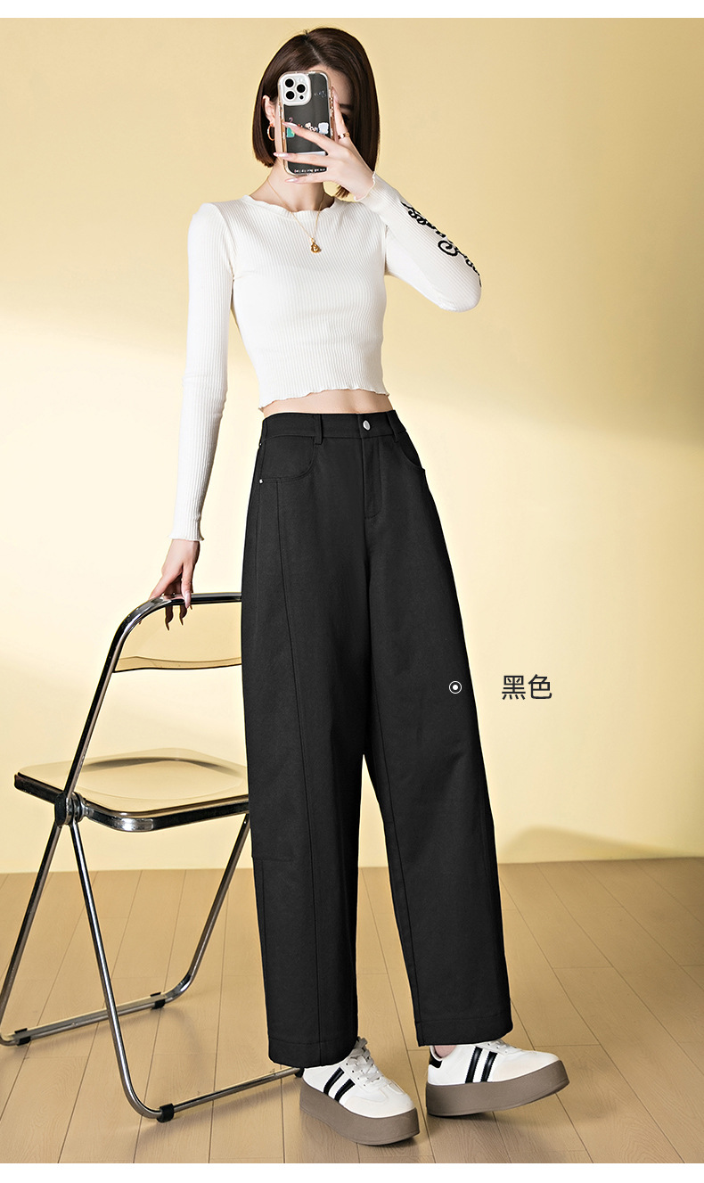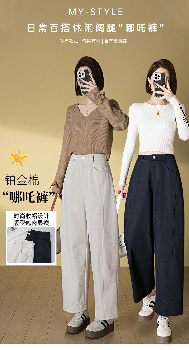 HSS 3059休闲哪吒裤松紧后腰宽松遮肉小个子弯刀裤