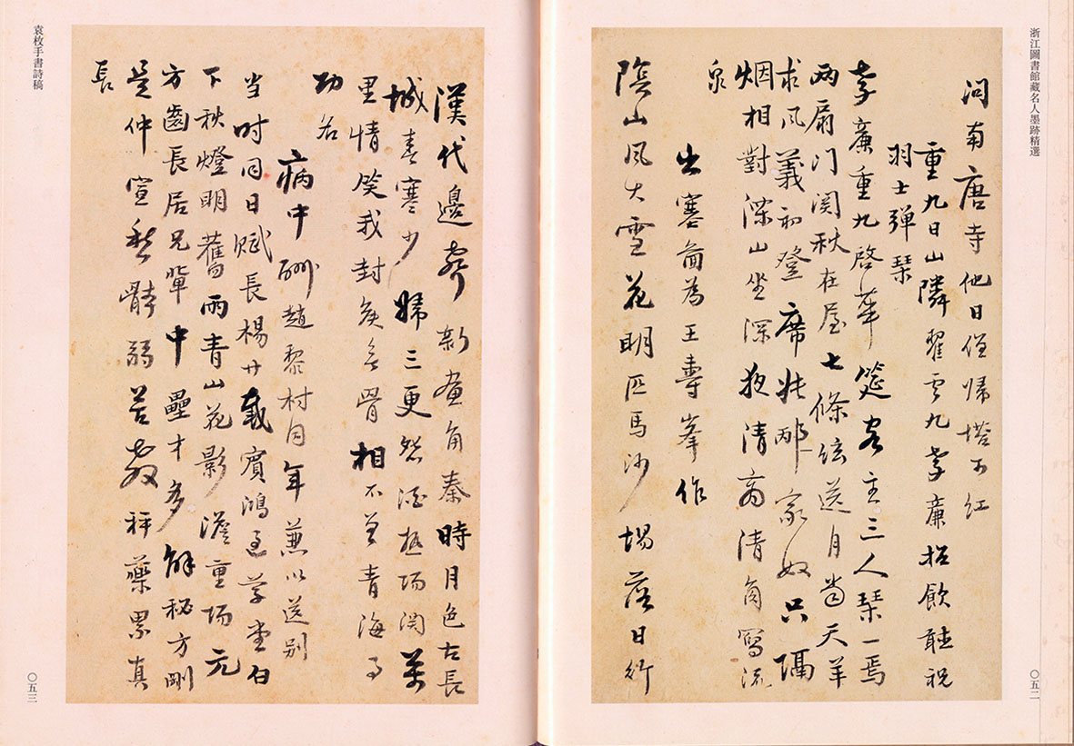 《浙江图书馆藏名人墨迹精选》作为浙江古籍保护工程——古籍民国文献系列出版物之一,二00九年由中华书局出版发行。当时按照选择具有较高学术史料价值与艺术观赏价值的清康雍乾嘉时期硕翠大家手迹,的原则,从浙江图书馆典藏文献中遴选出林佶、钱陈羣、袁枚、梁同书、姚鼐、阮元等六人的手书诗稿,汇为一编,展示馆藏精品,提供学界参考。
