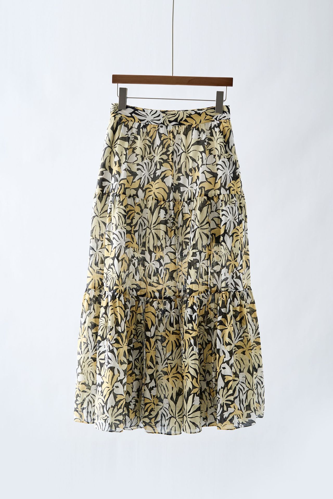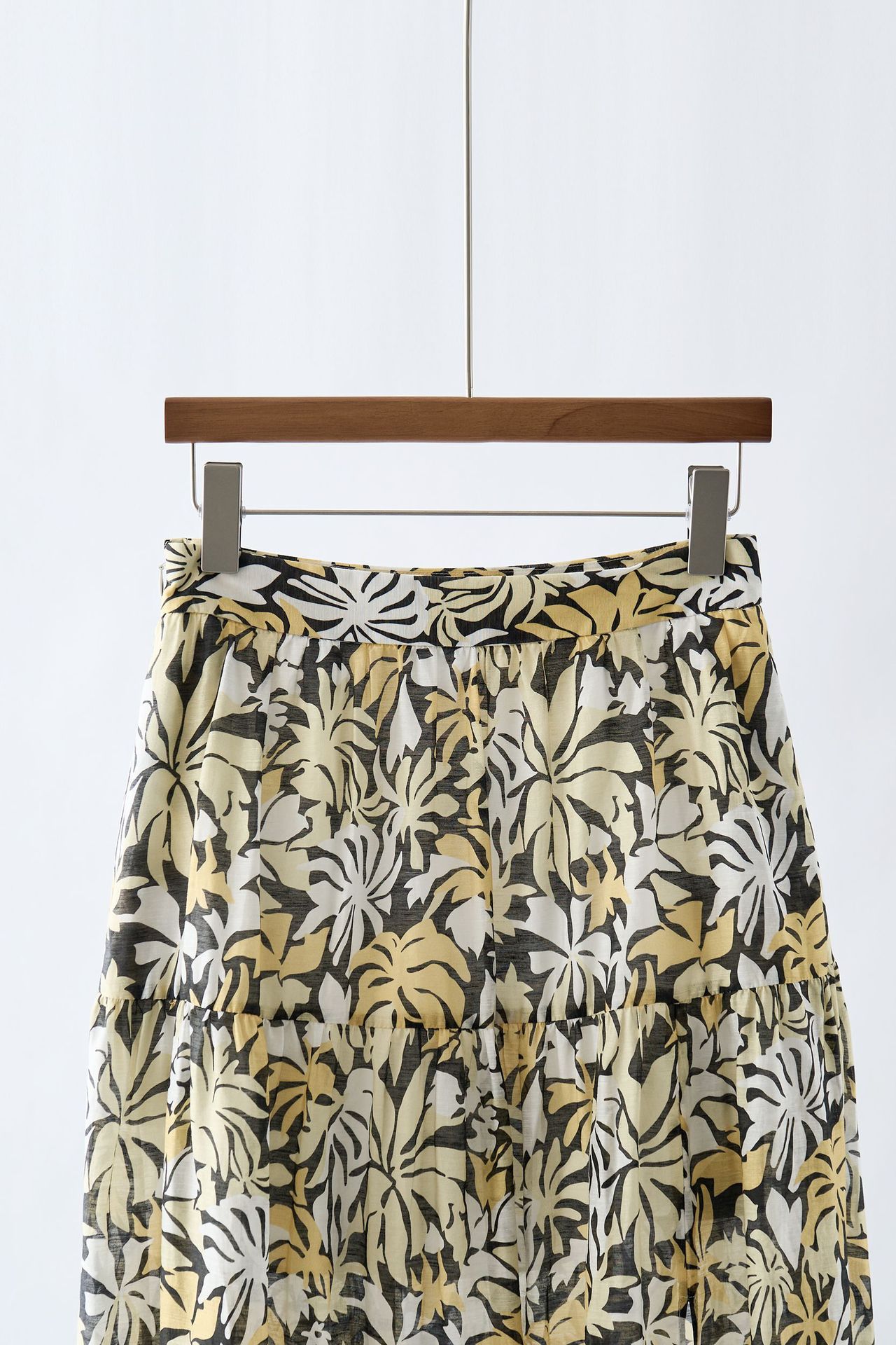 「自」全新升级【铂金会员220/天猫299/差价79】(12111)洛诗琳2025夏新款天丝亚麻高腰法式印花半身裙女