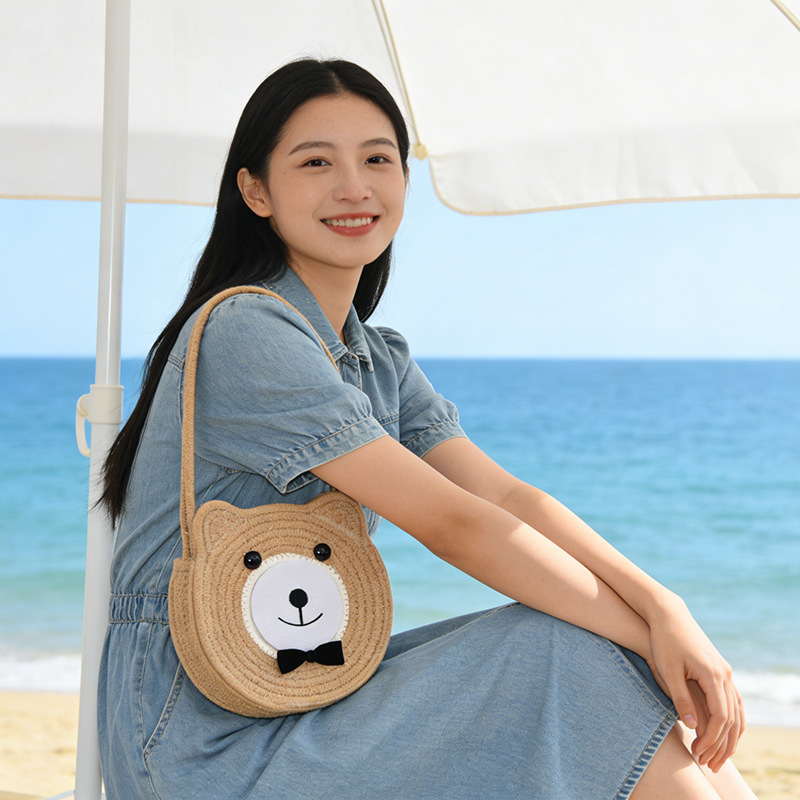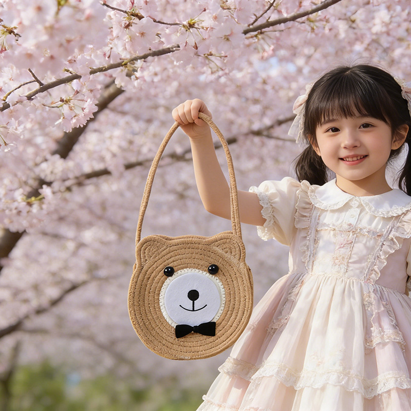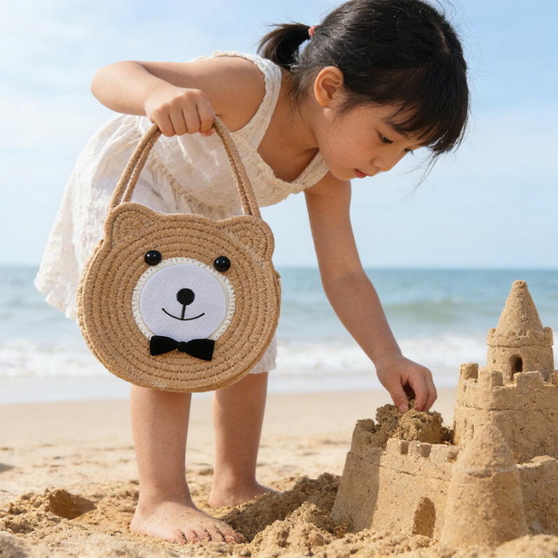 【软萌可爱!小巧无负担】草编包包韩国小众儿童编织包海边度假沙滩包手提篮可爱针织包。xb