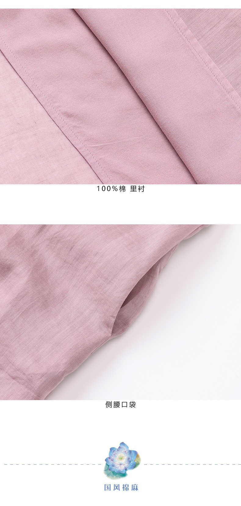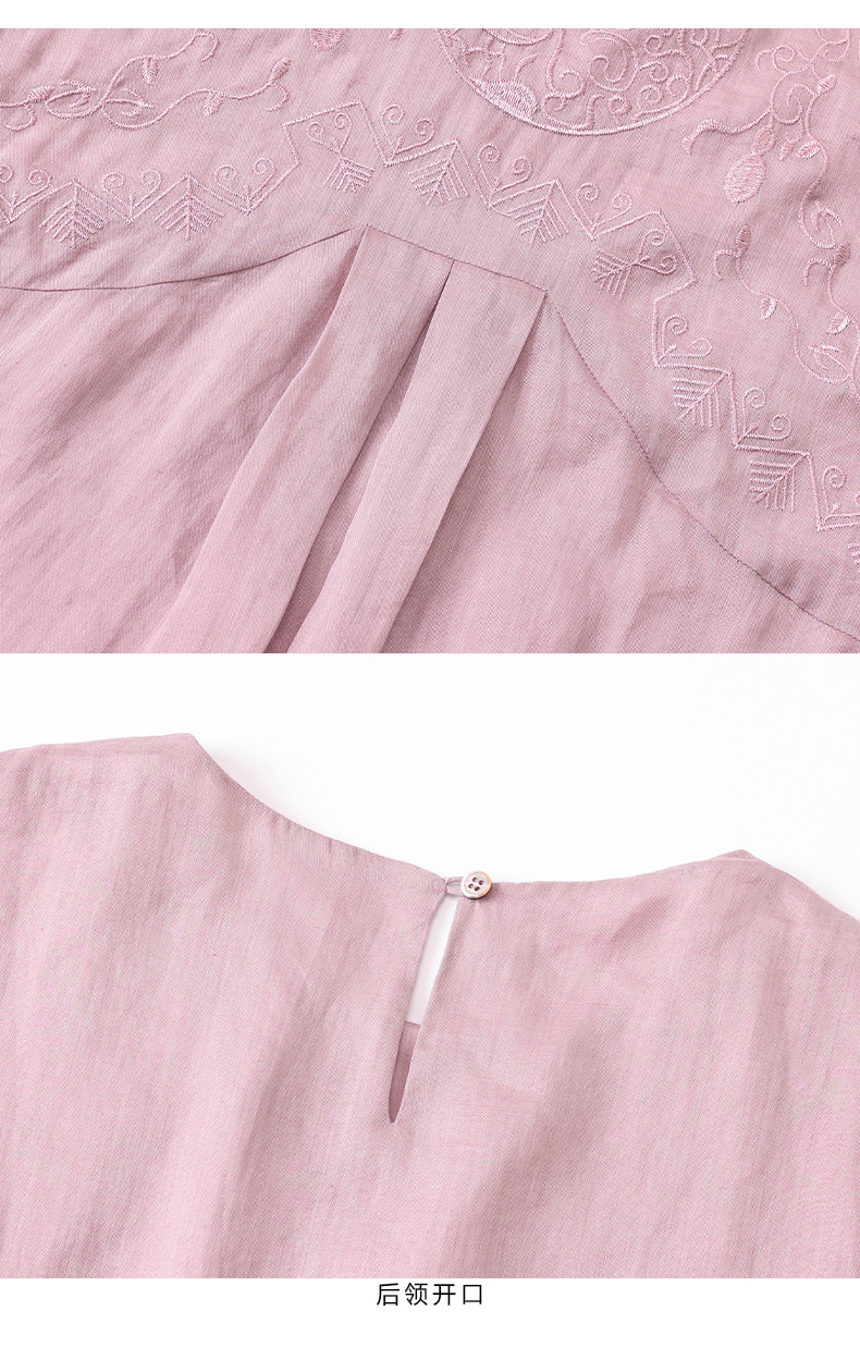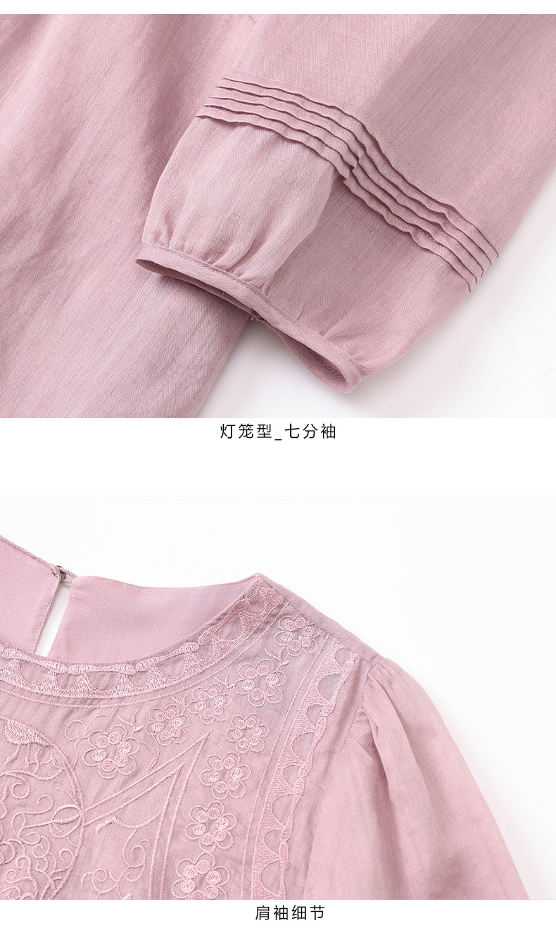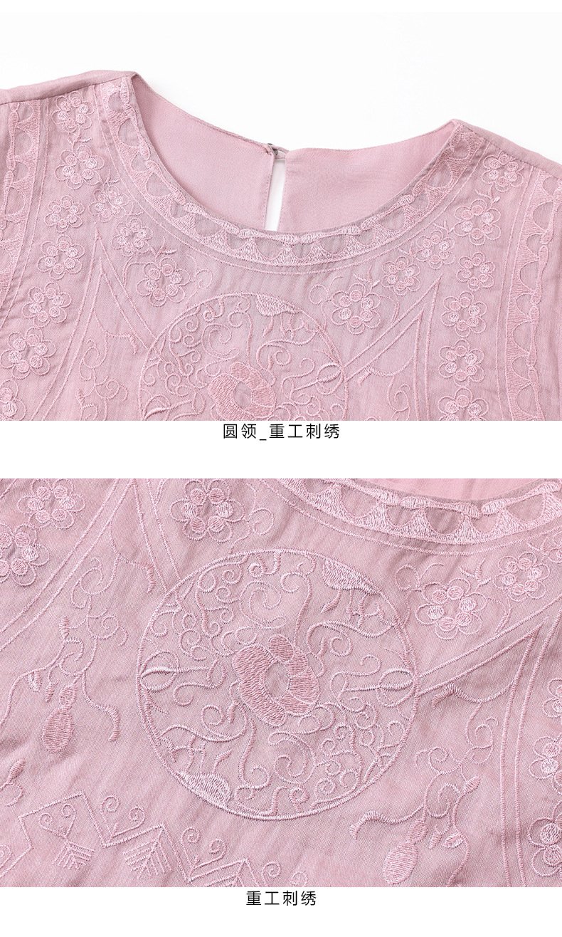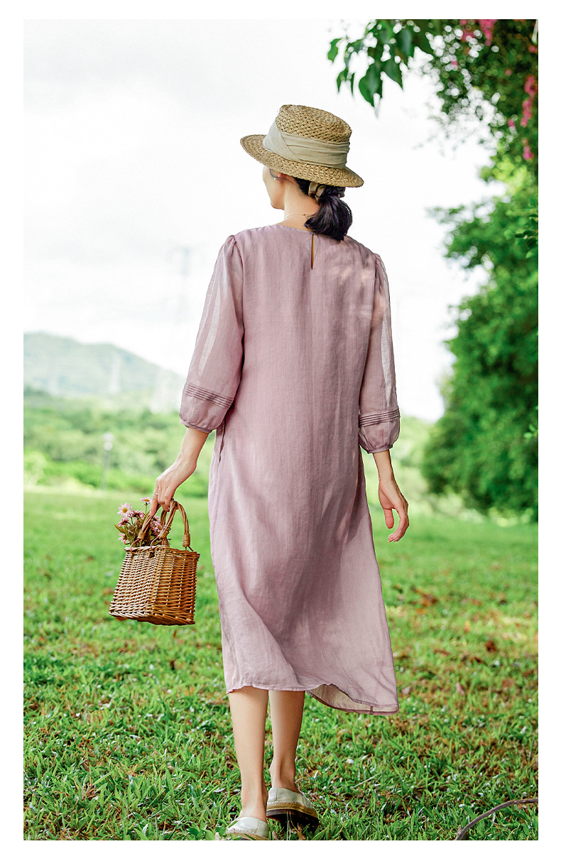 HM-S383夏季新款重工刺绣苎麻连衣裙国风文艺灯笼七分袖宽松显瘦袍子