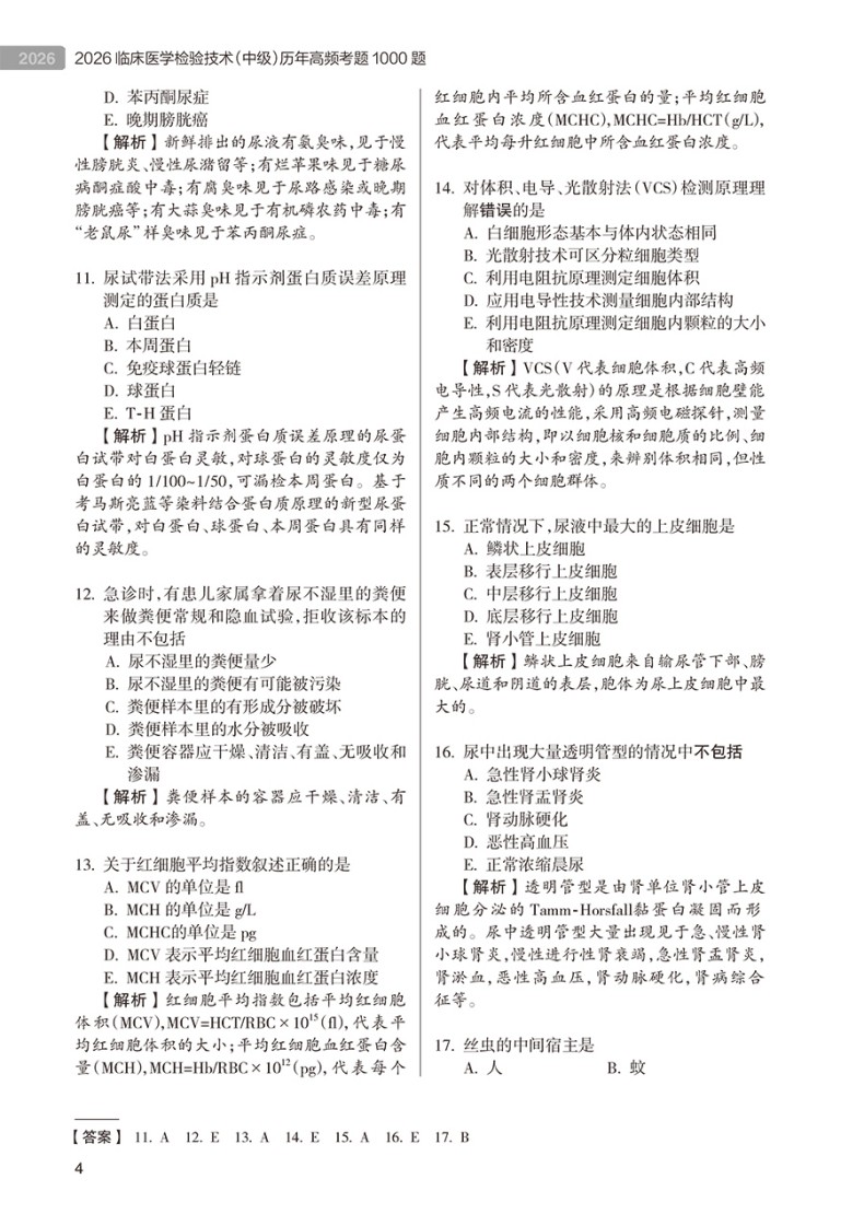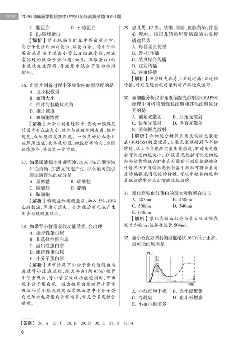 书名:2026临床医学检验技术(中级)历年高频考题1000题