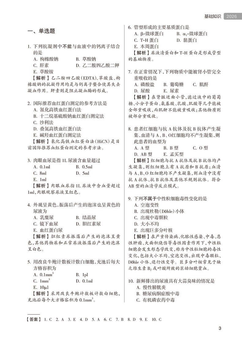 “全国卫生专业技术资格考试习题集丛书”以新考试大纲和全国卫生专业技术资格考试用书编写专家委员会编写的考试指导为依据,编写工作遵循科学、严谨、客观、规范的原则,严格按照实际考试的科目划分和题型分布进行编写,切实考查考生对知识点的掌握程度和专业水平。临床医学检验技术专业习题集丛书包括《同步习题与全真模拟》《历年高频考题1000题》。《历年高频考题1000题》根据考试大纲和考试指导进行编写,精选历年高频考题,重点、难点突出,各题附有详细解析,方便考生理解;同时附赠口袋书“必会考点”,方便考生平时记忆与复习,以及一套模拟试卷,方便考生考前综合自测。