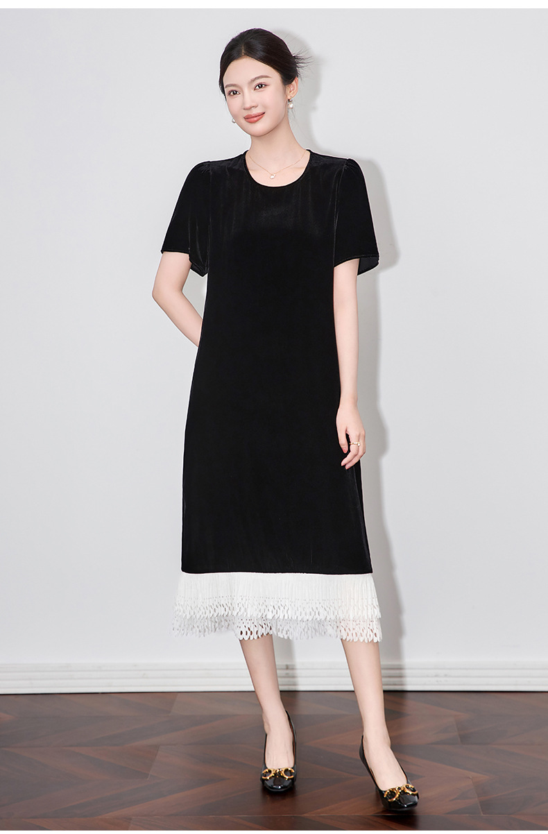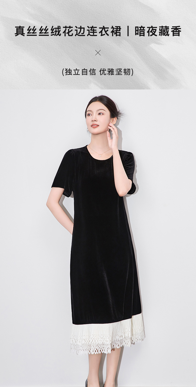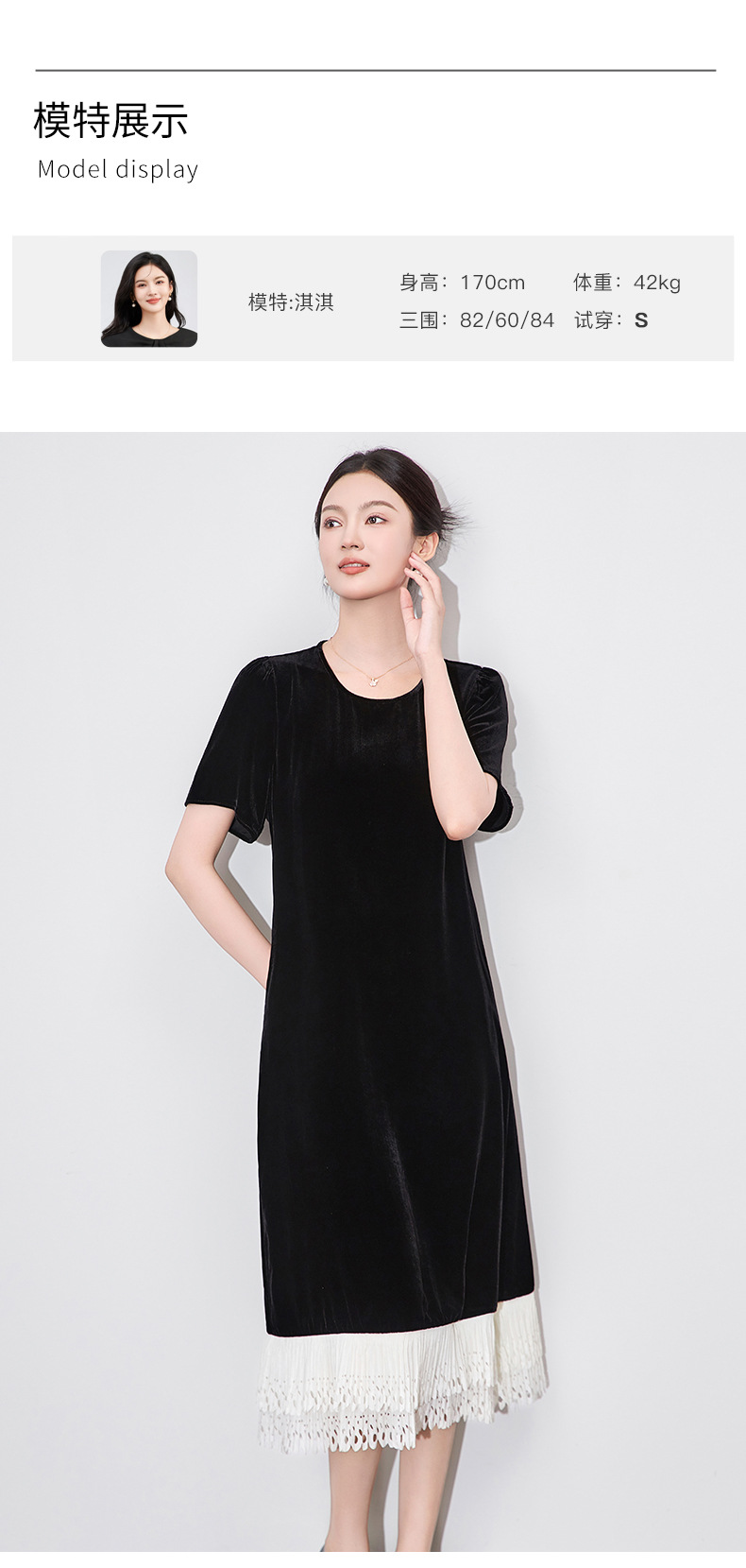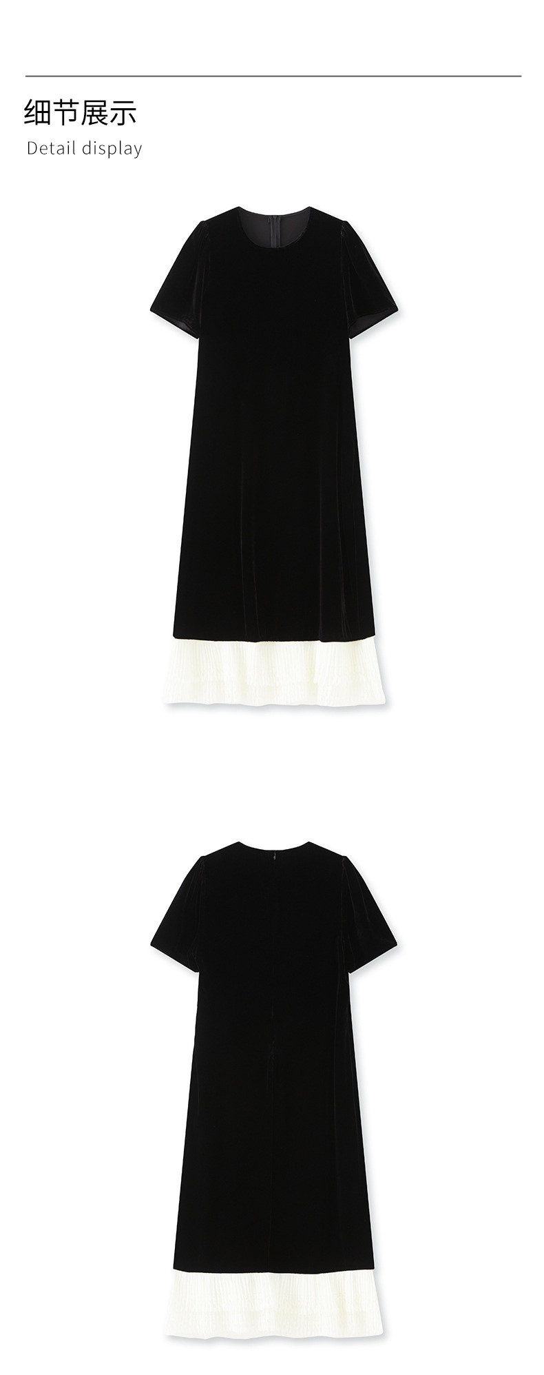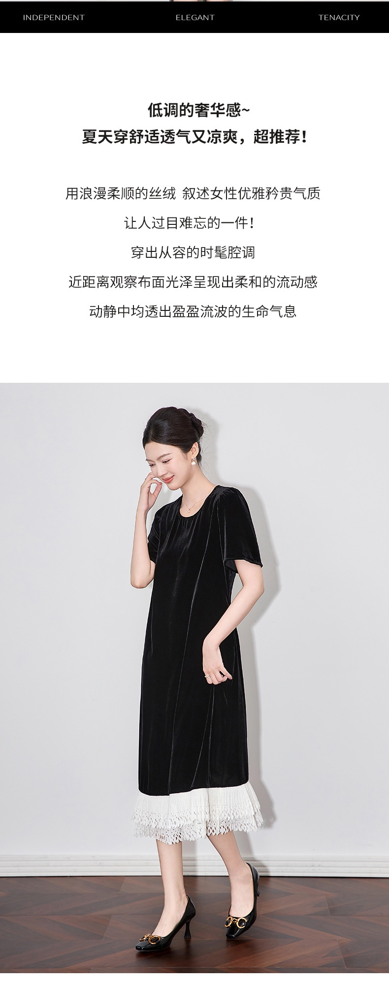 「高货wl」全新升级【铂金会员422/天猫569/差价147】(13025)洛诗琳真丝丝绒撞色拼接连衣裙2025夏季气质优雅显瘦裙子