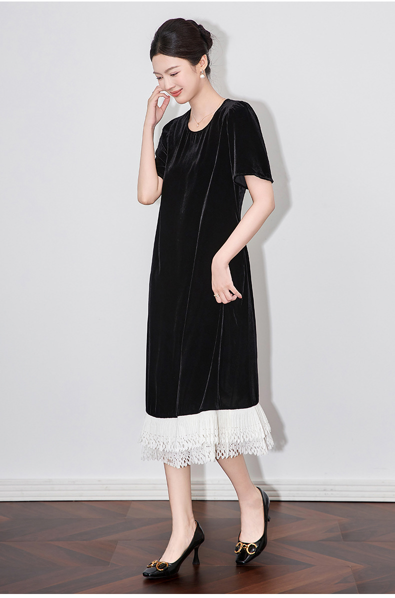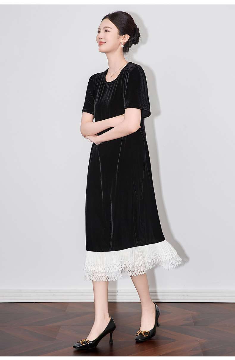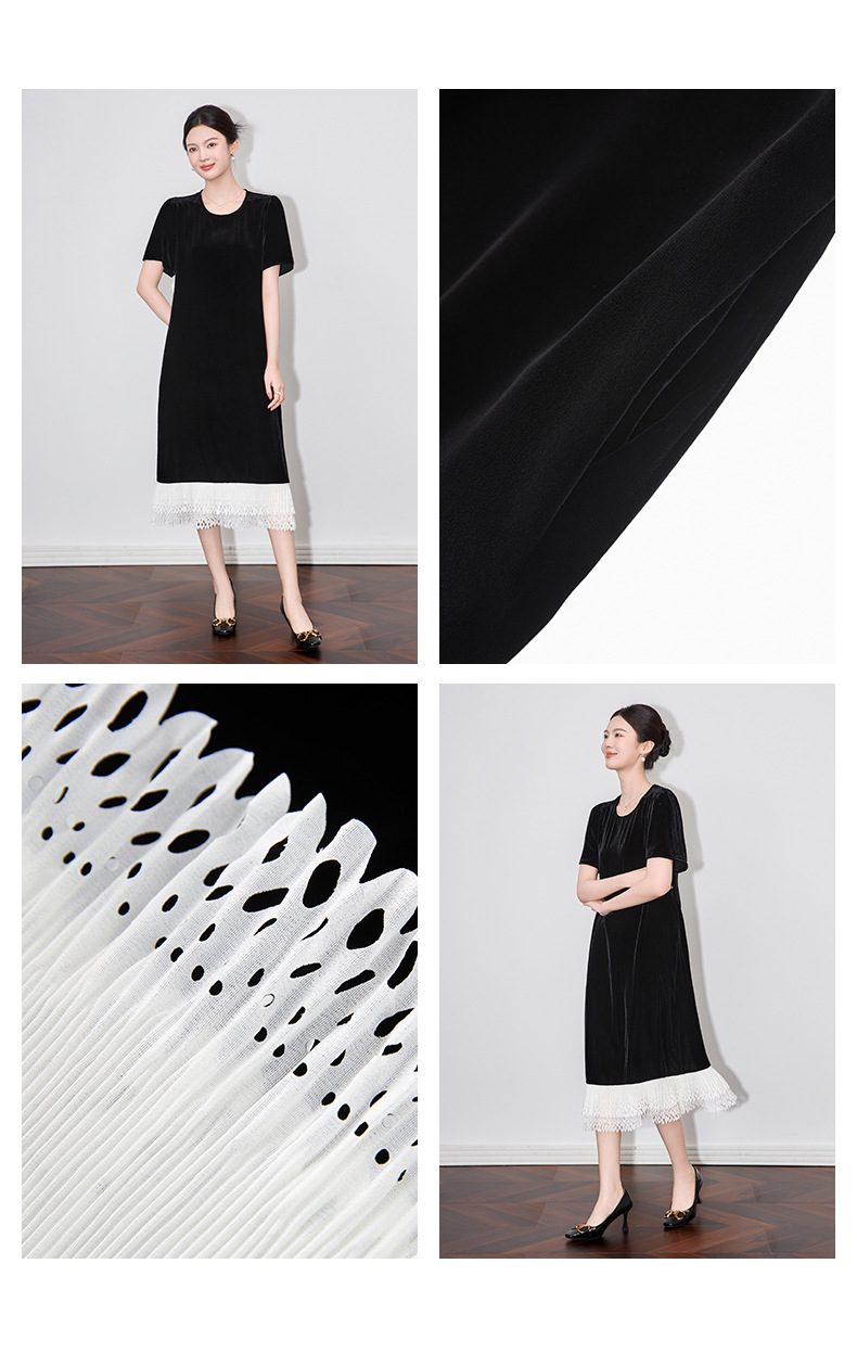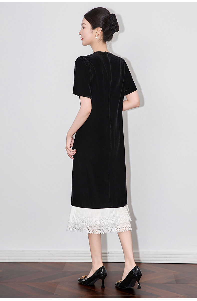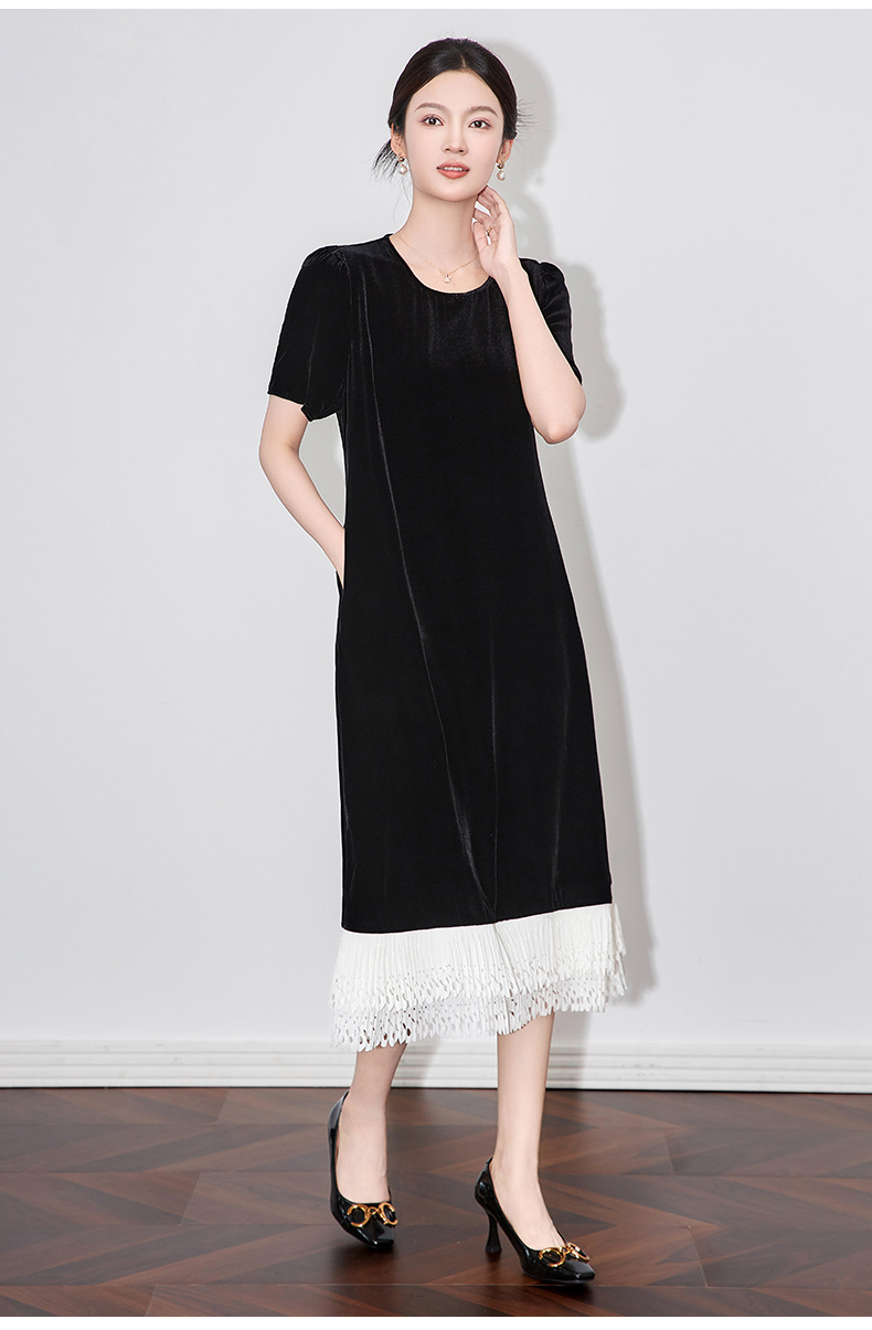 「高货wl」全新升级【铂金会员422/天猫569/差价147】(13025)洛诗琳真丝丝绒撞色拼接连衣裙2025夏季气质优雅显瘦裙子