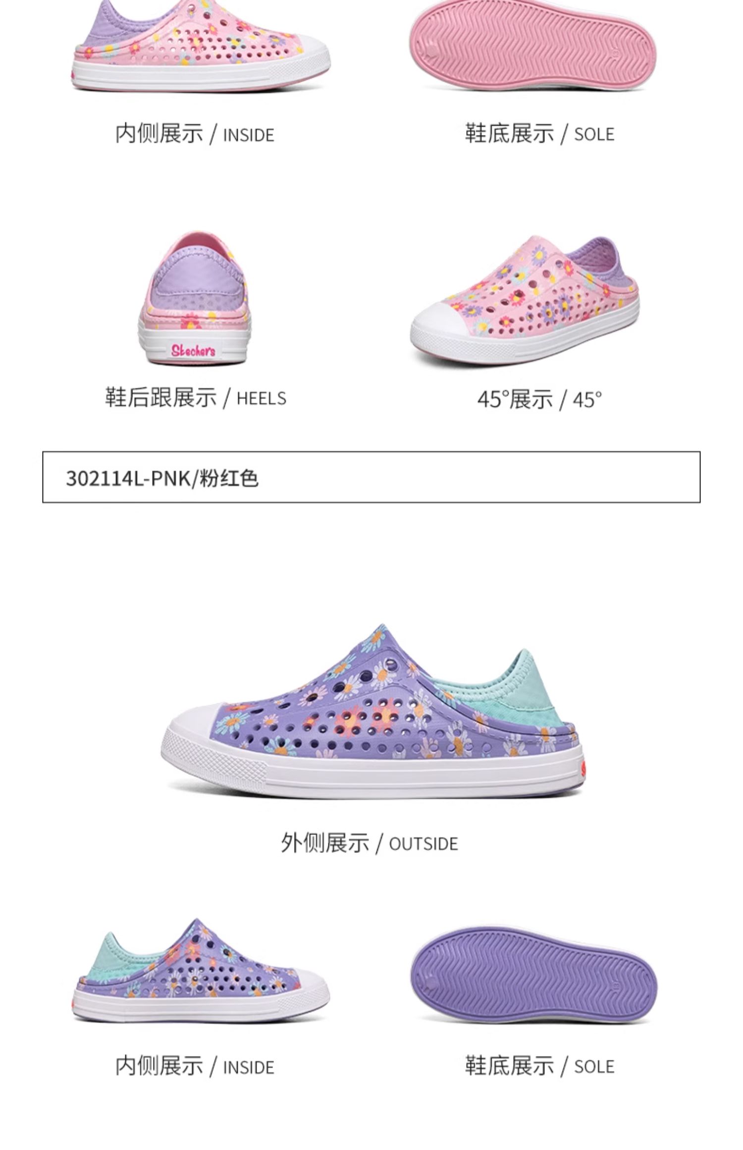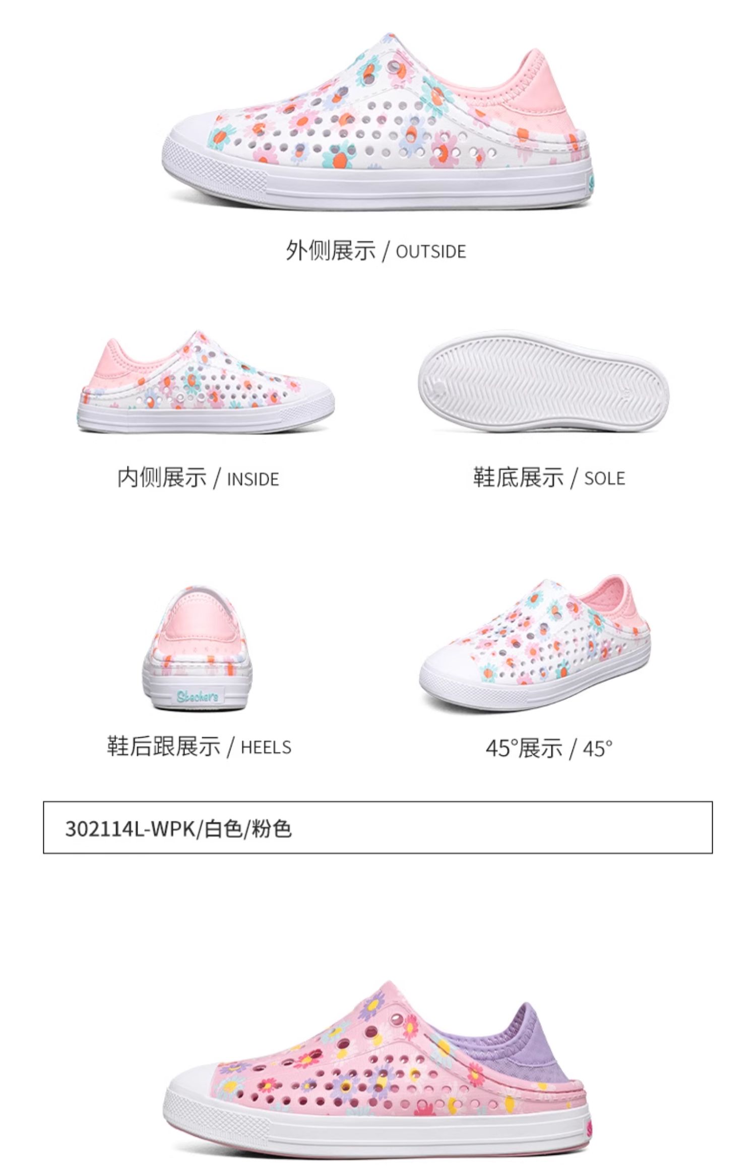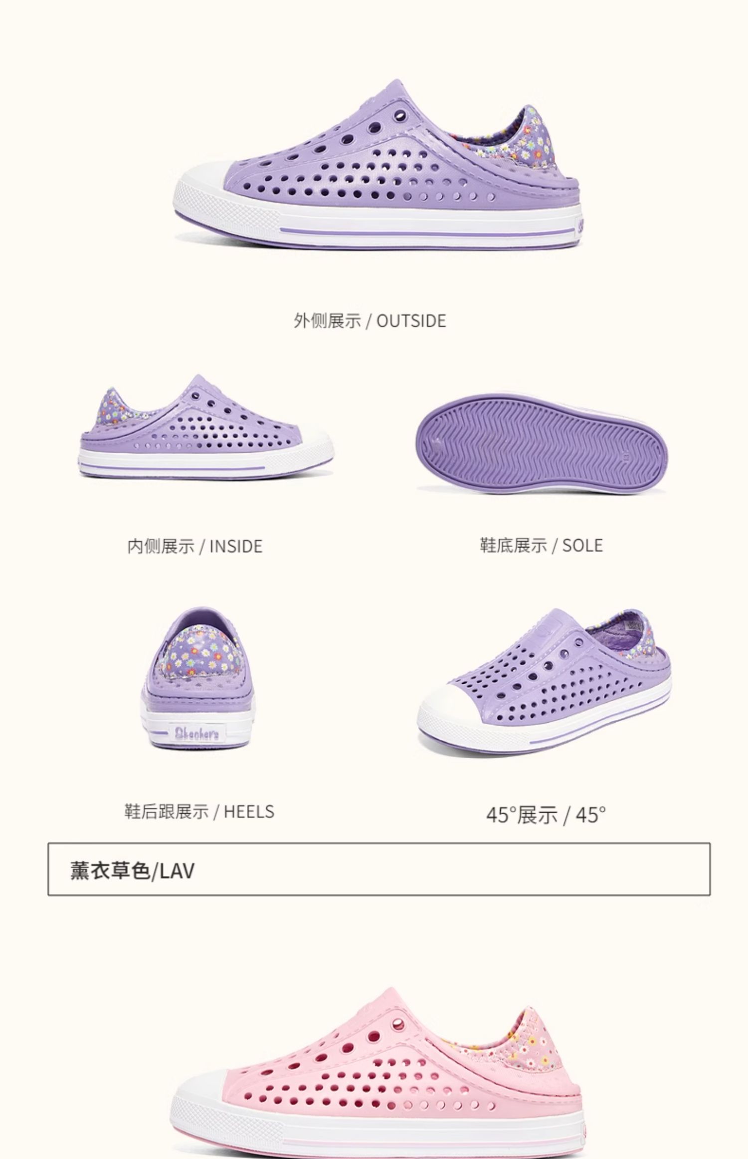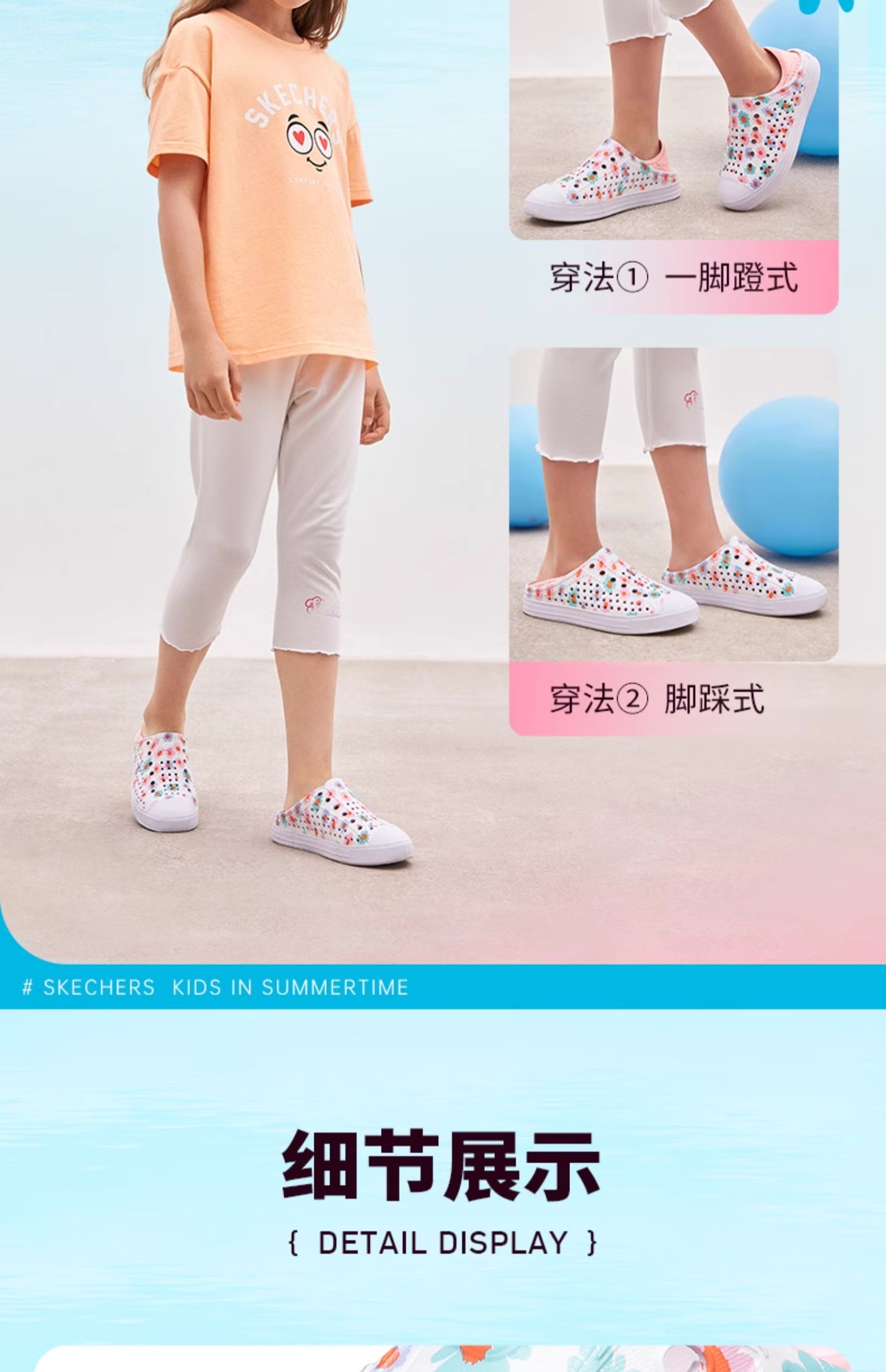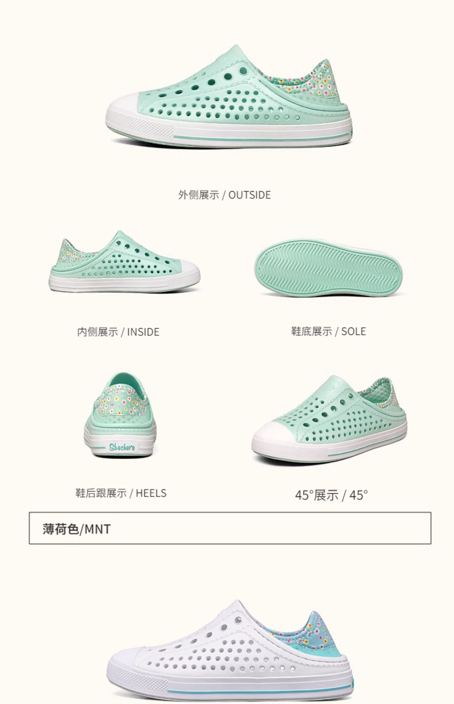 Skechers斯凯奇儿童洞洞鞋女童沙滩鞋女孩包头凉鞋夏款大小童拖鞋