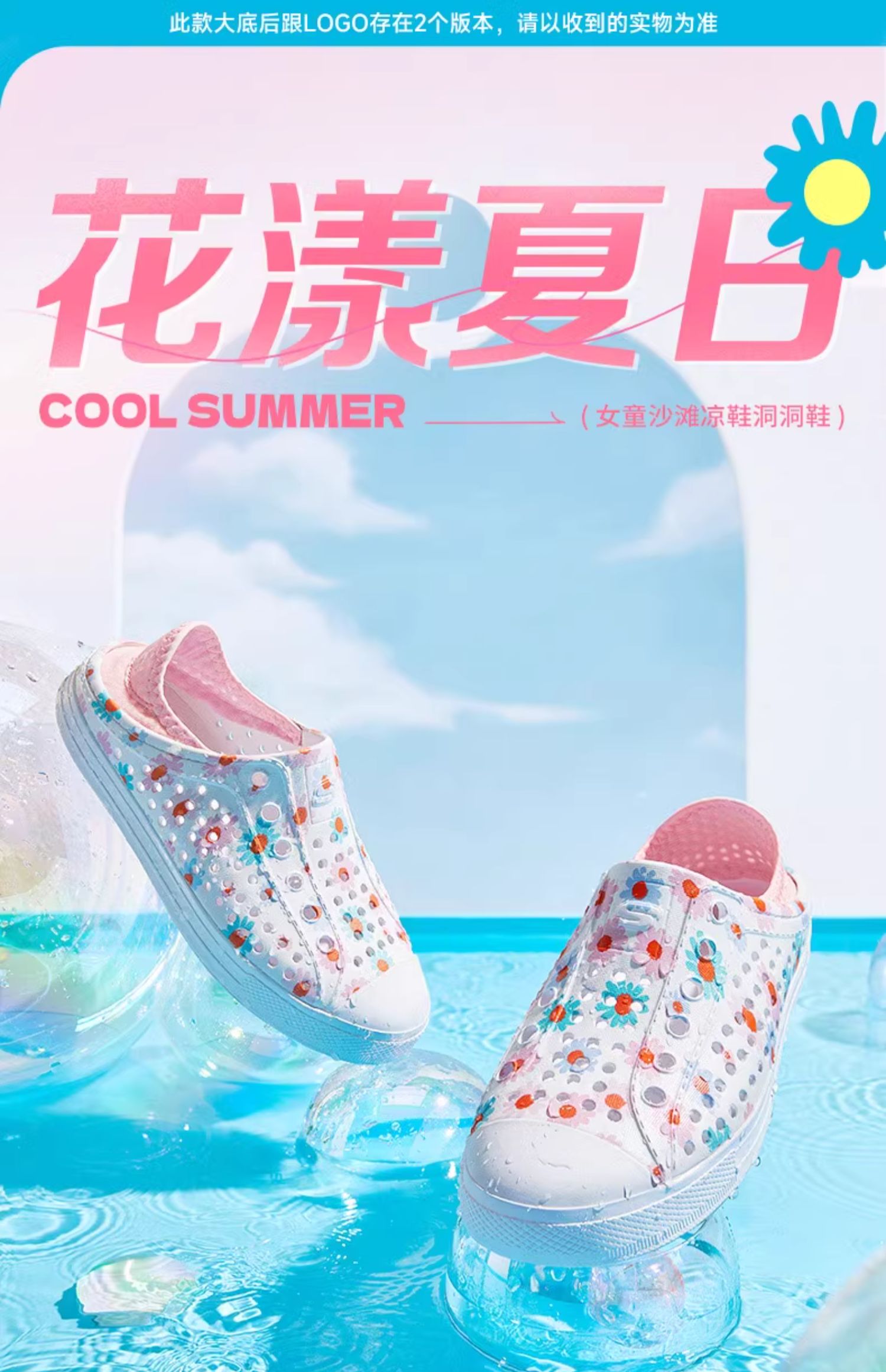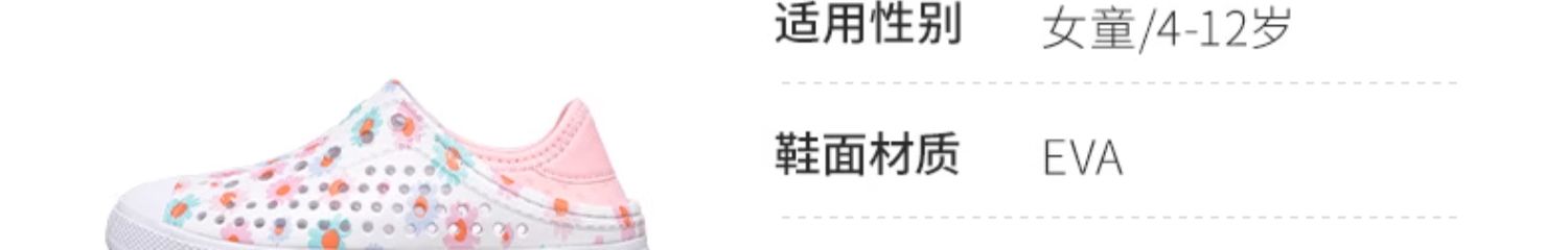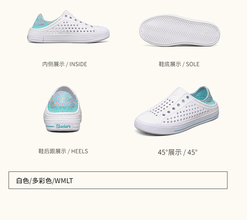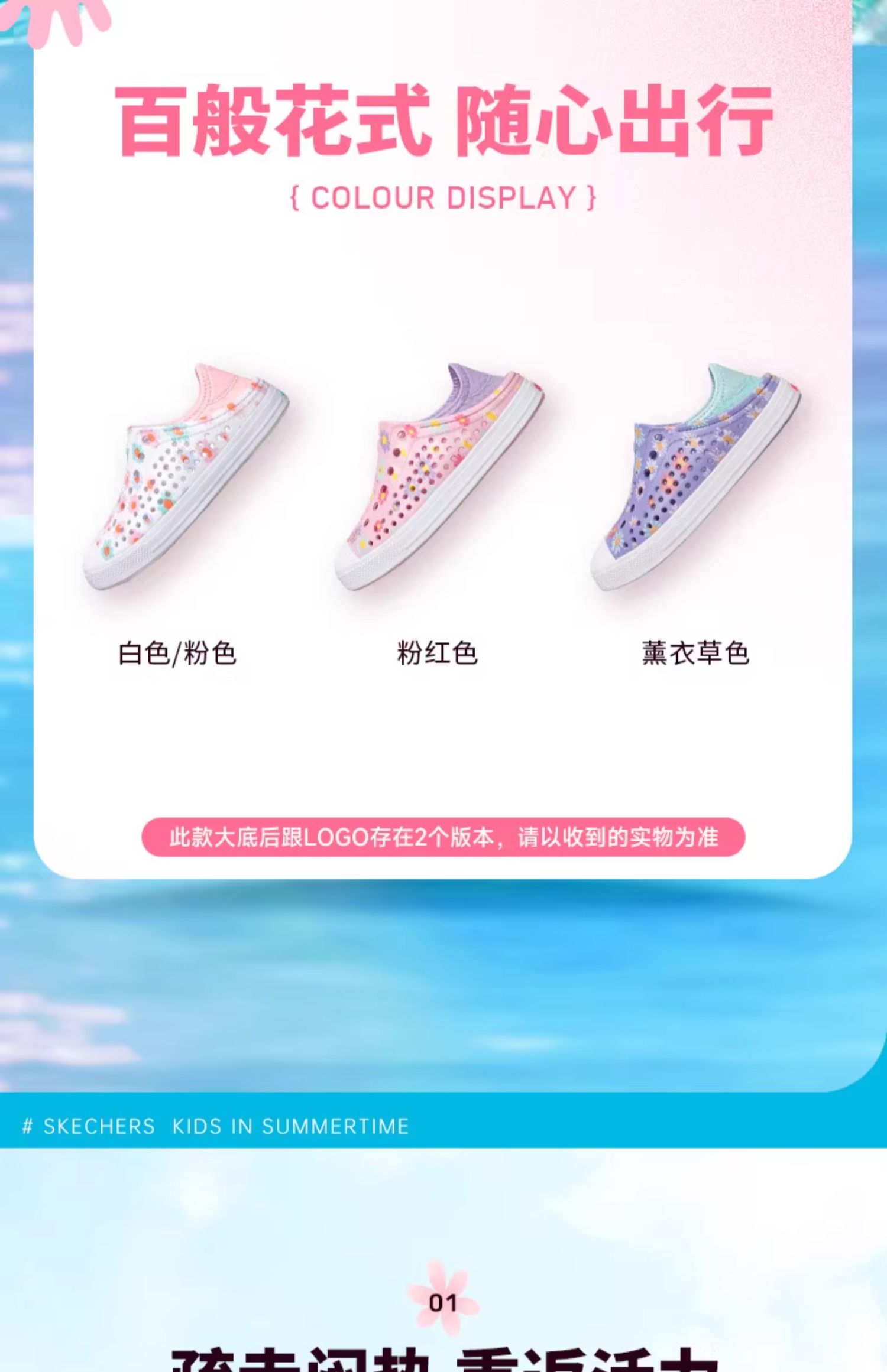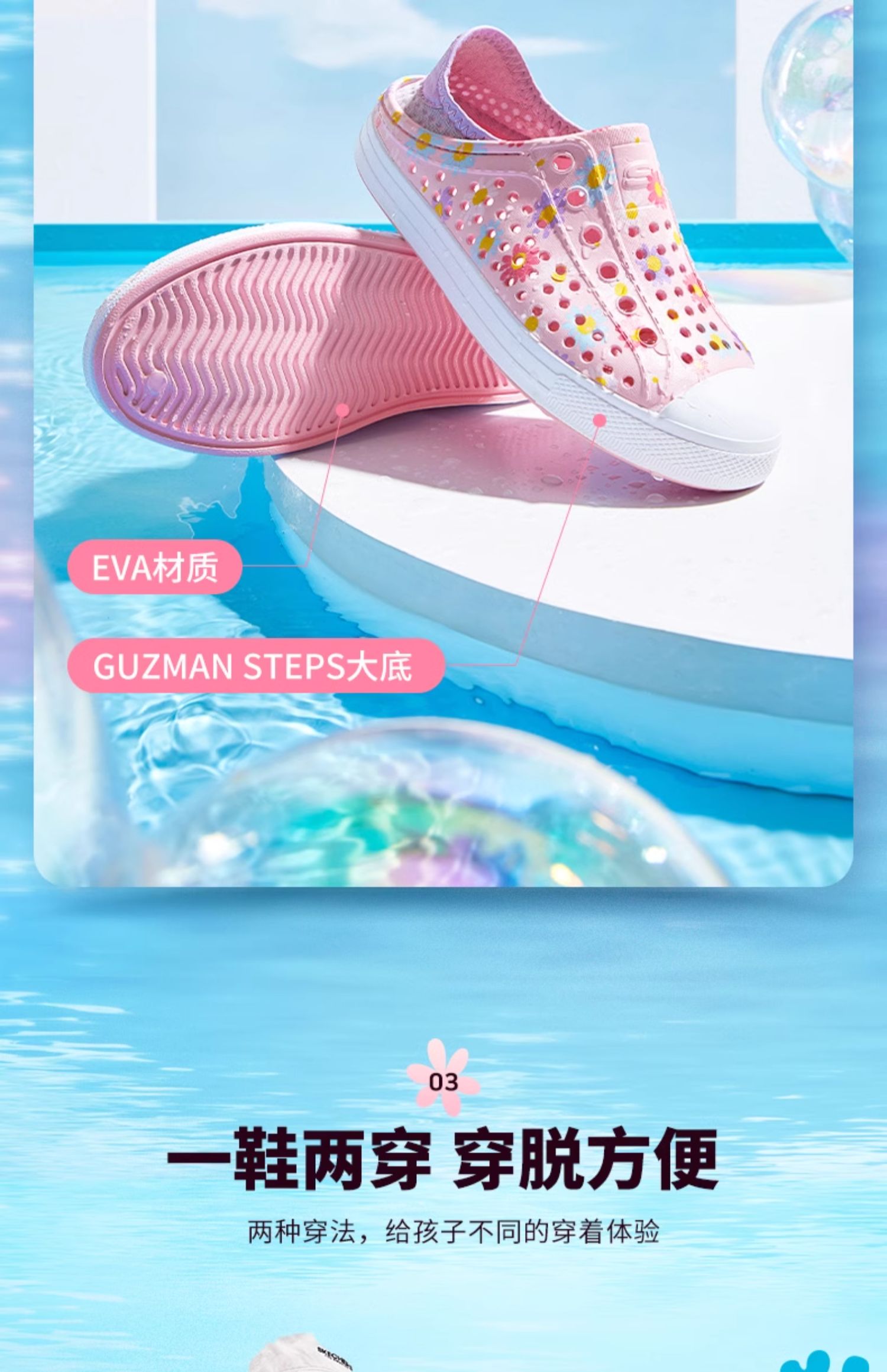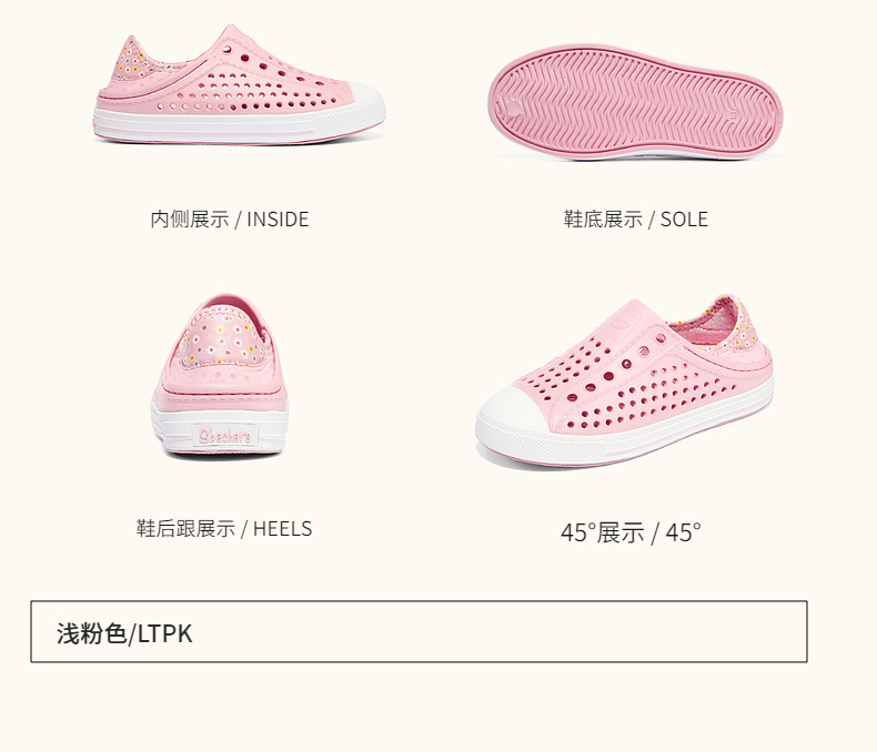 Skechers斯凯奇儿童洞洞鞋女童沙滩鞋女孩包头凉鞋夏款大小童拖鞋