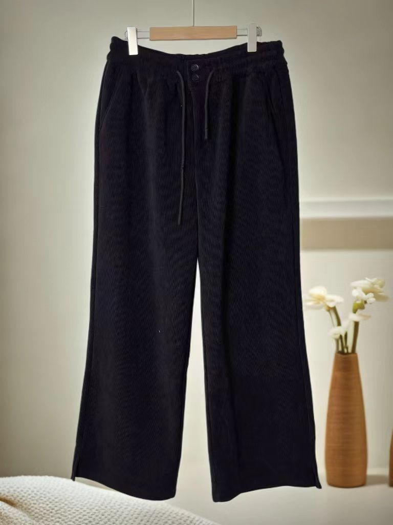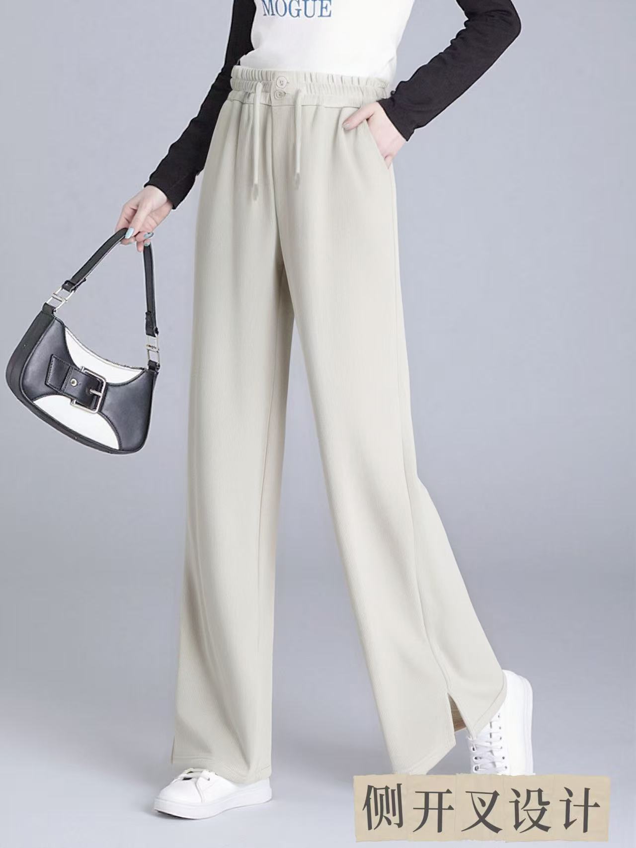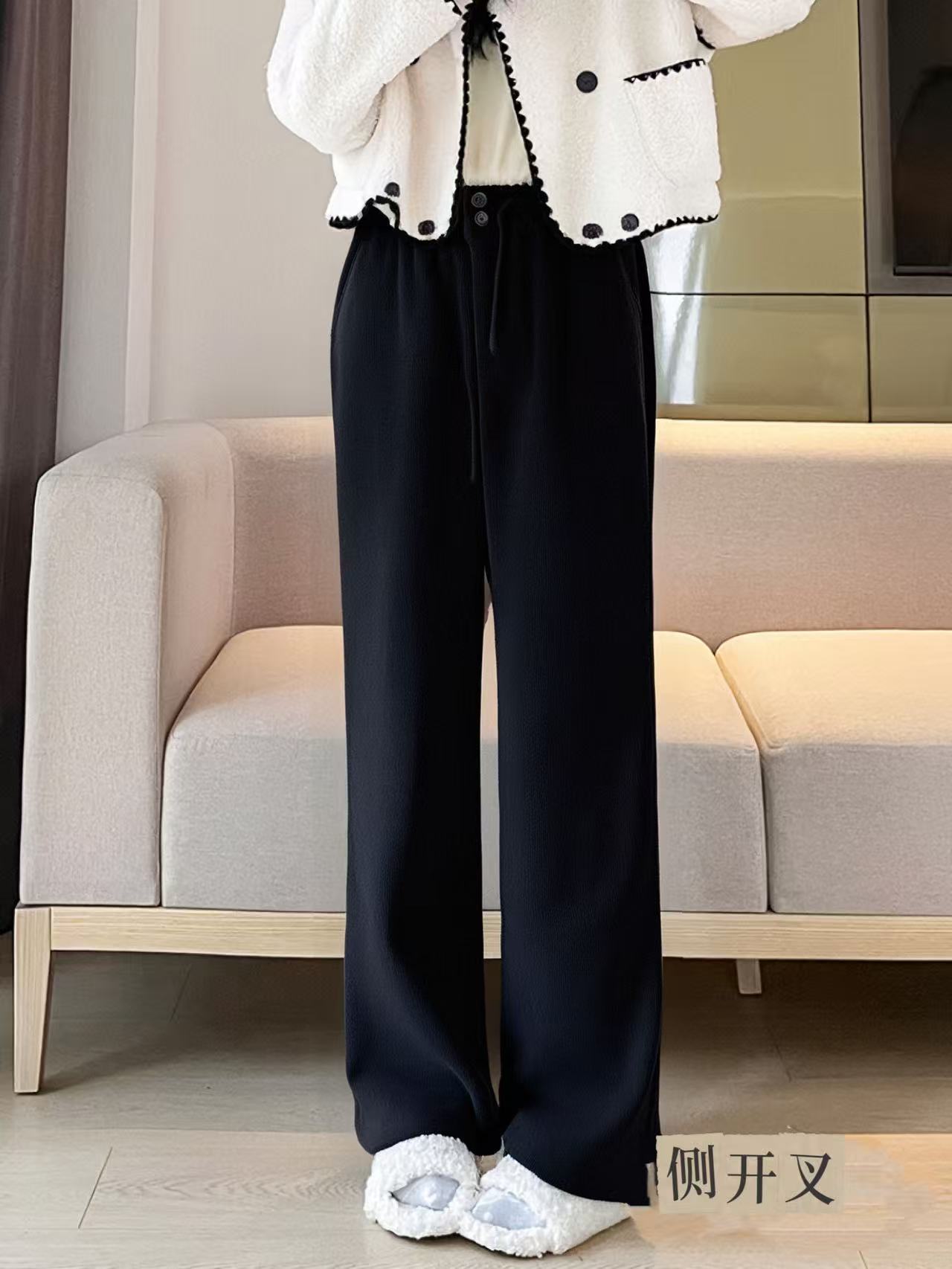 【诗铭洛可】(加绒)MJ311条纹开叉裤秋冬加绒两粒扣直筒裤B17-3