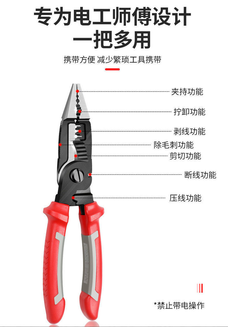 【九合一多功能剥线钳】电工专用钢丝压线钳 扒皮拔线尖嘴钳子-优选好物-W仓