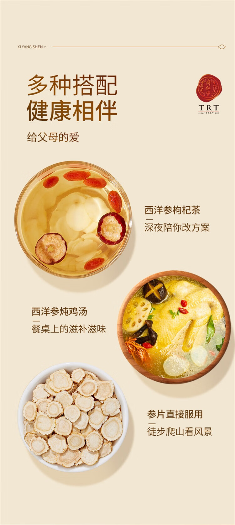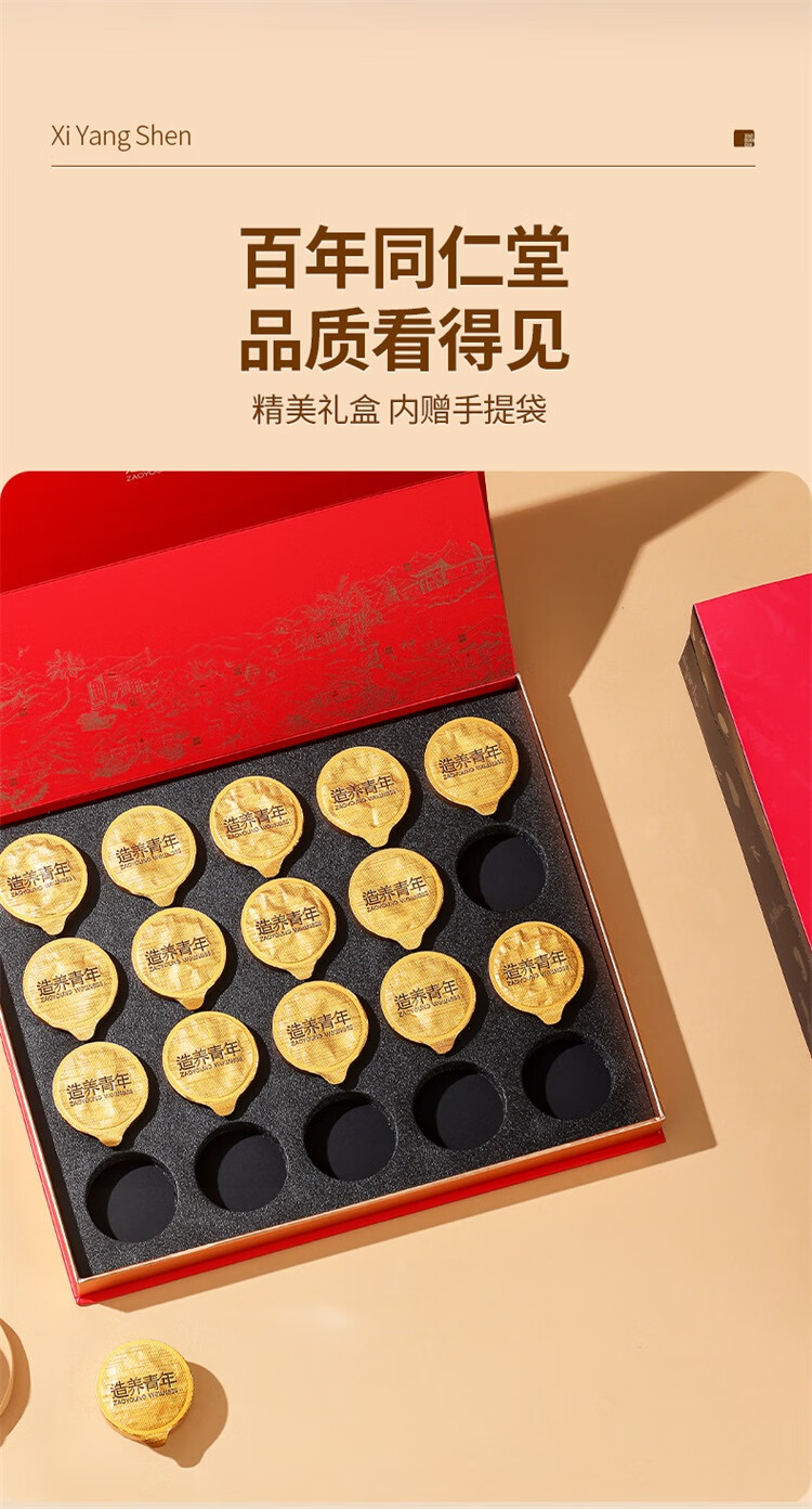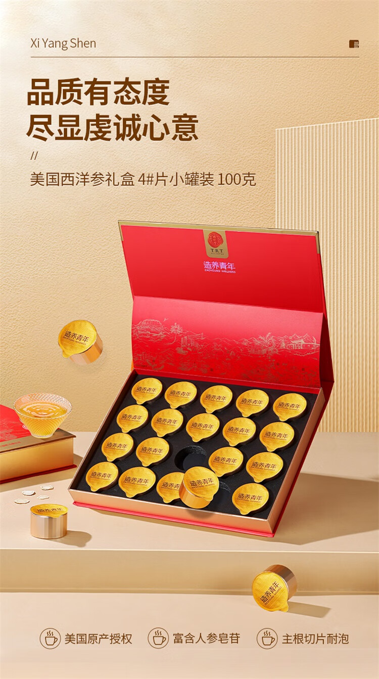 北京同仁堂 【中秋节礼品礼盒】 西洋参-4#片/100克(5克x20)美国进口西洋参 可磨粉泡水泡酒滋补养生 西洋参礼盒