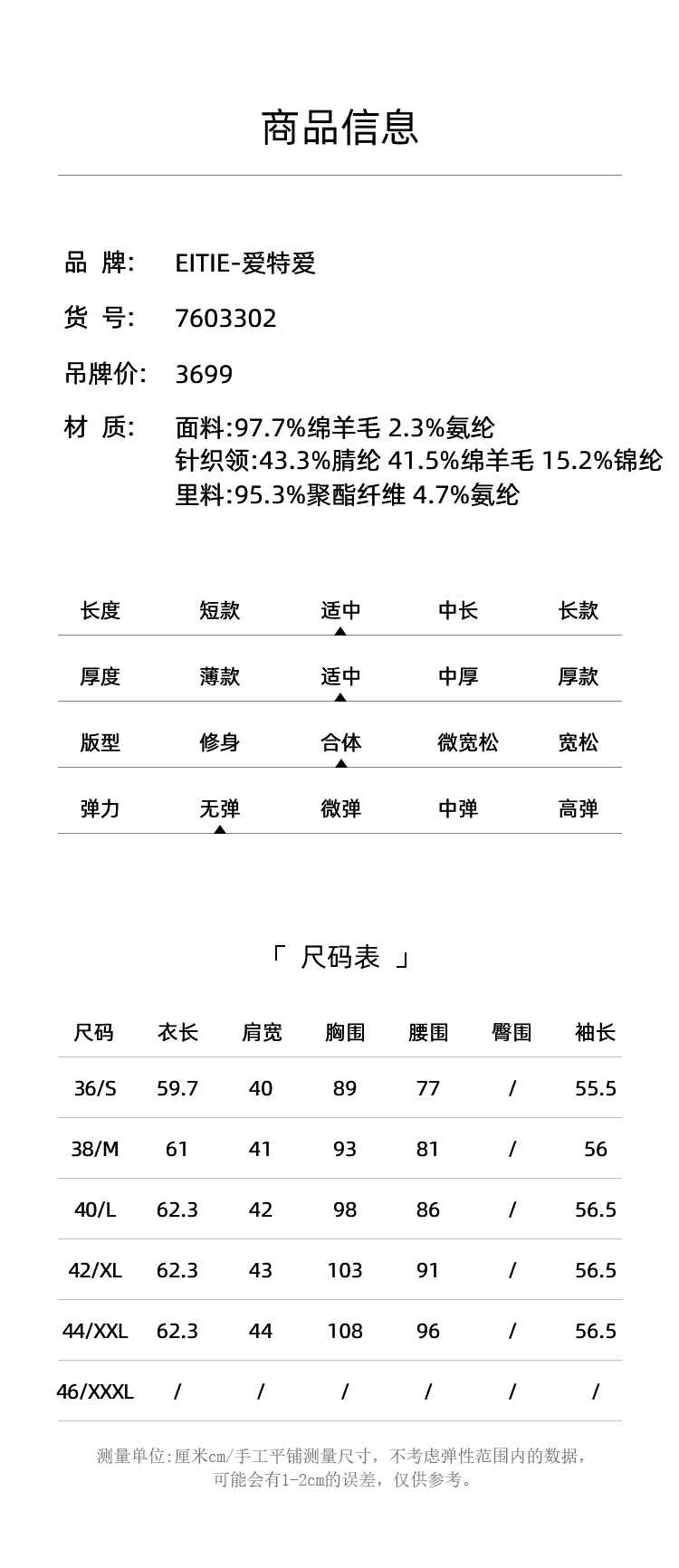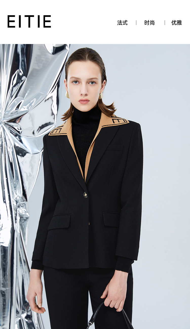 EITIE爱特爱冬季新款时尚百搭显瘦一粒扣外套女7603302