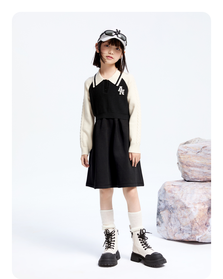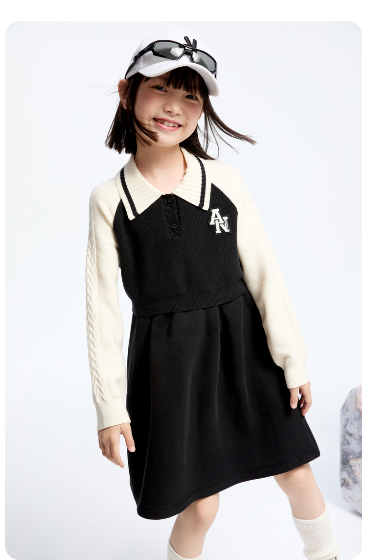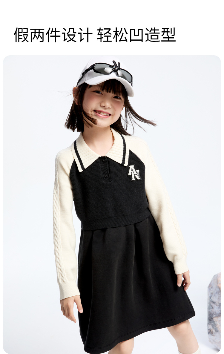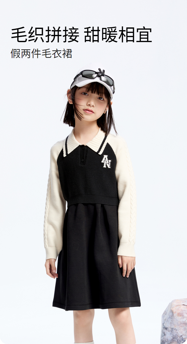 女童假两件毛衣裙冬季新款安奈儿童装实体店同款AG443800