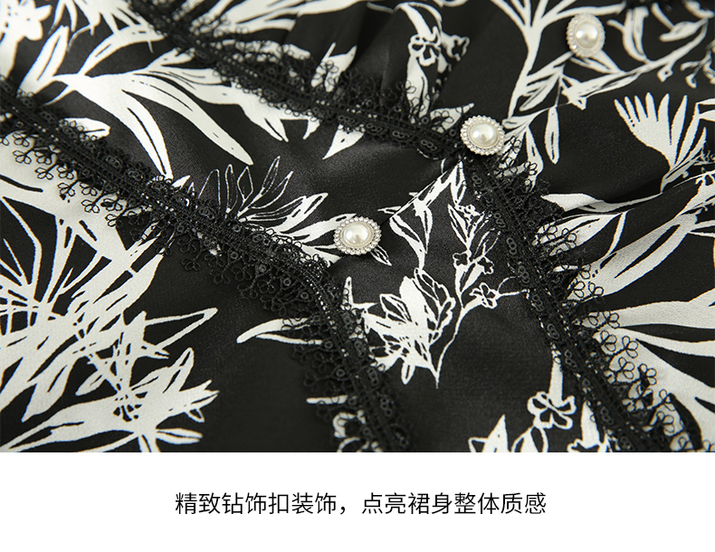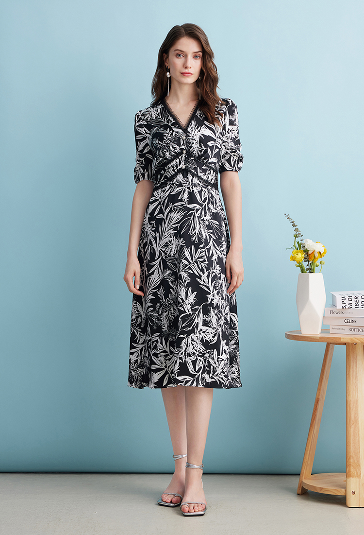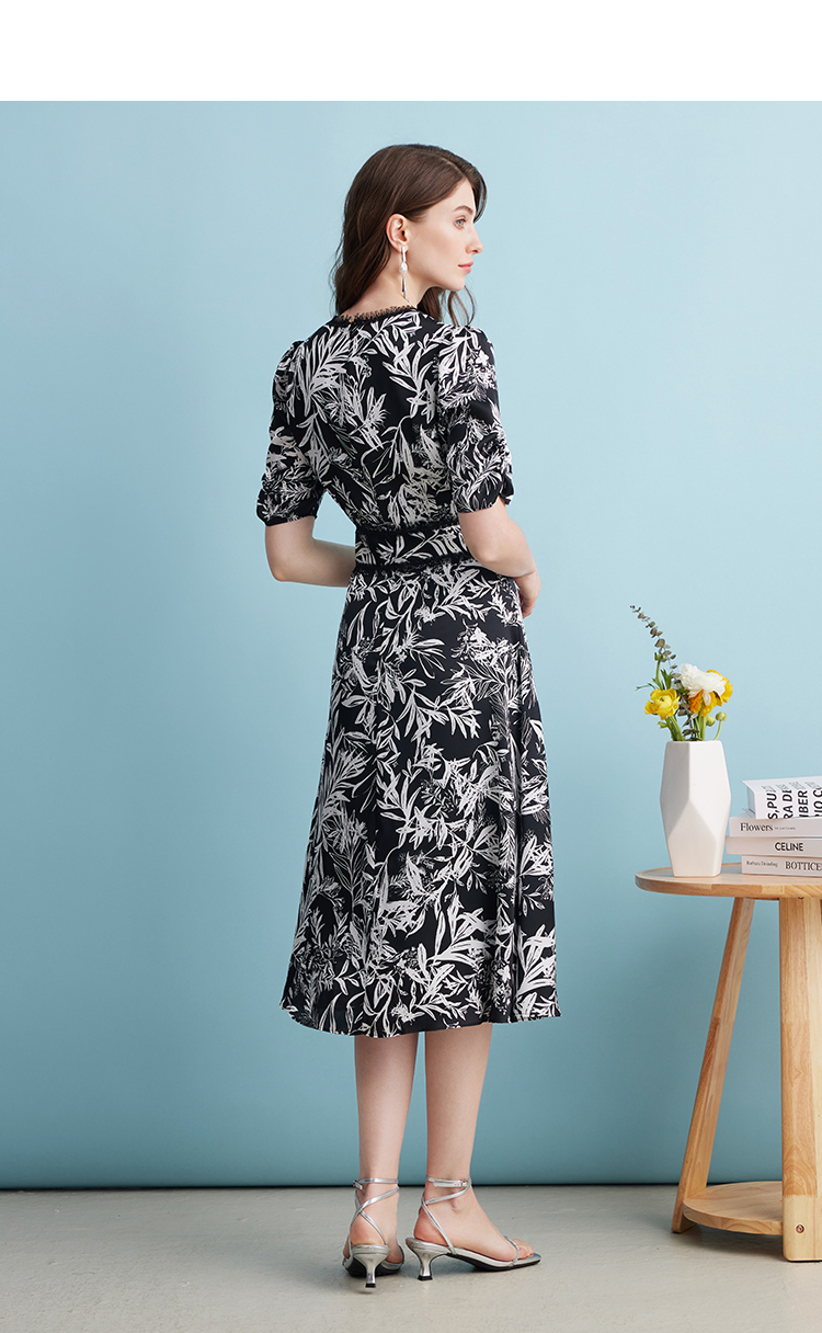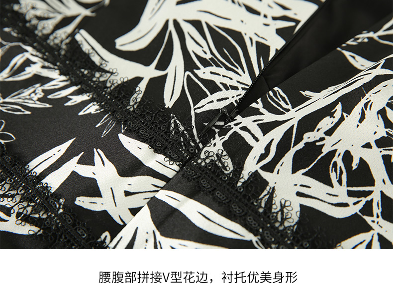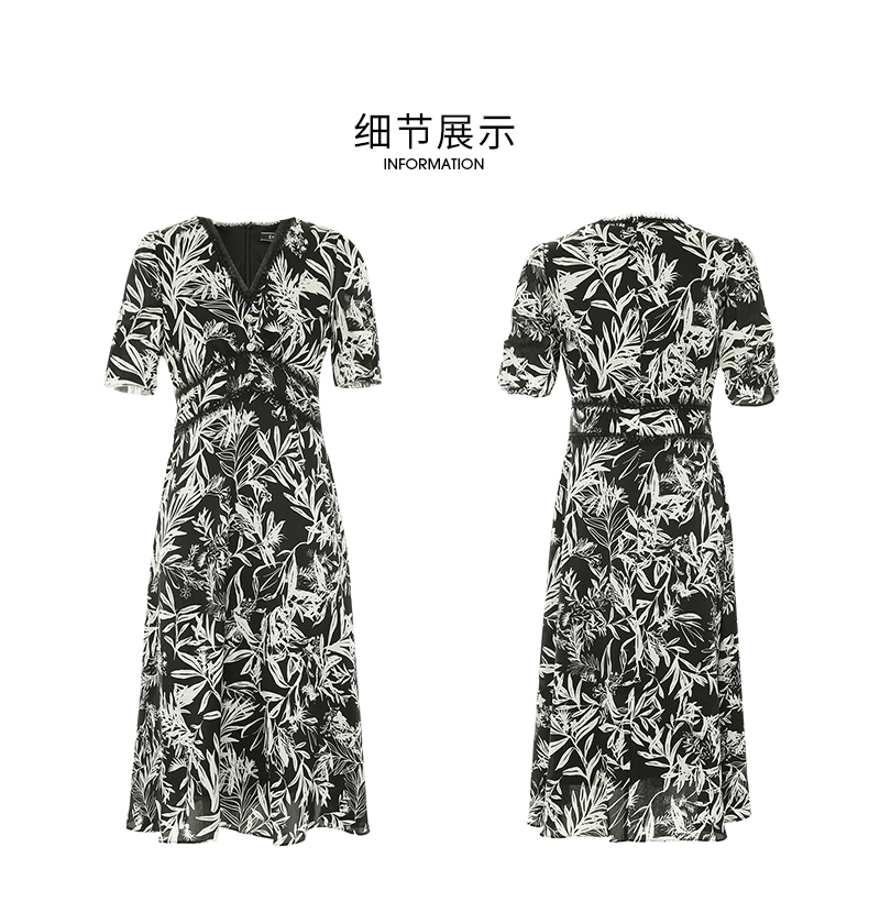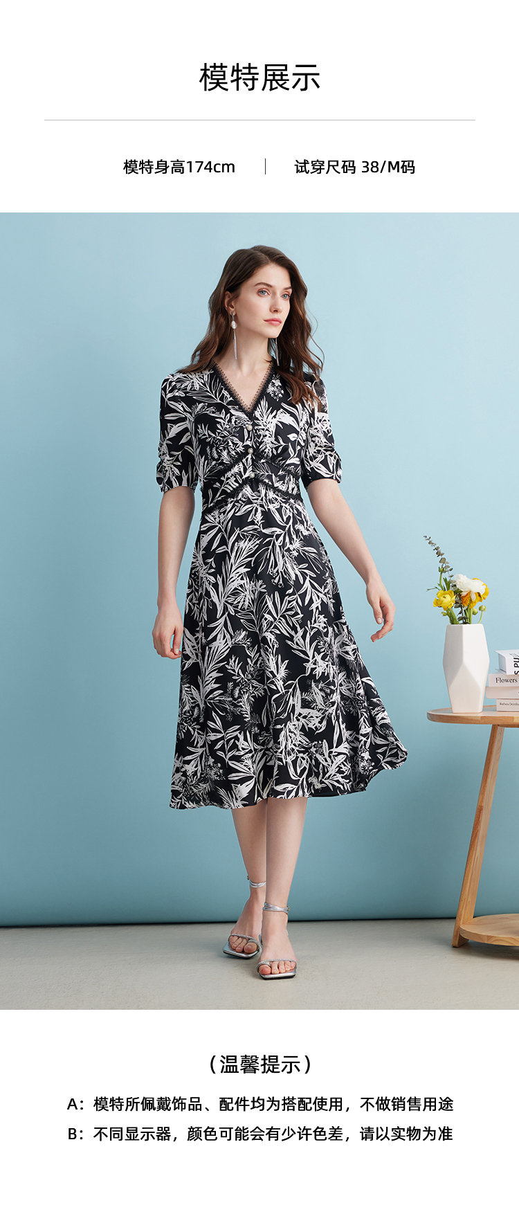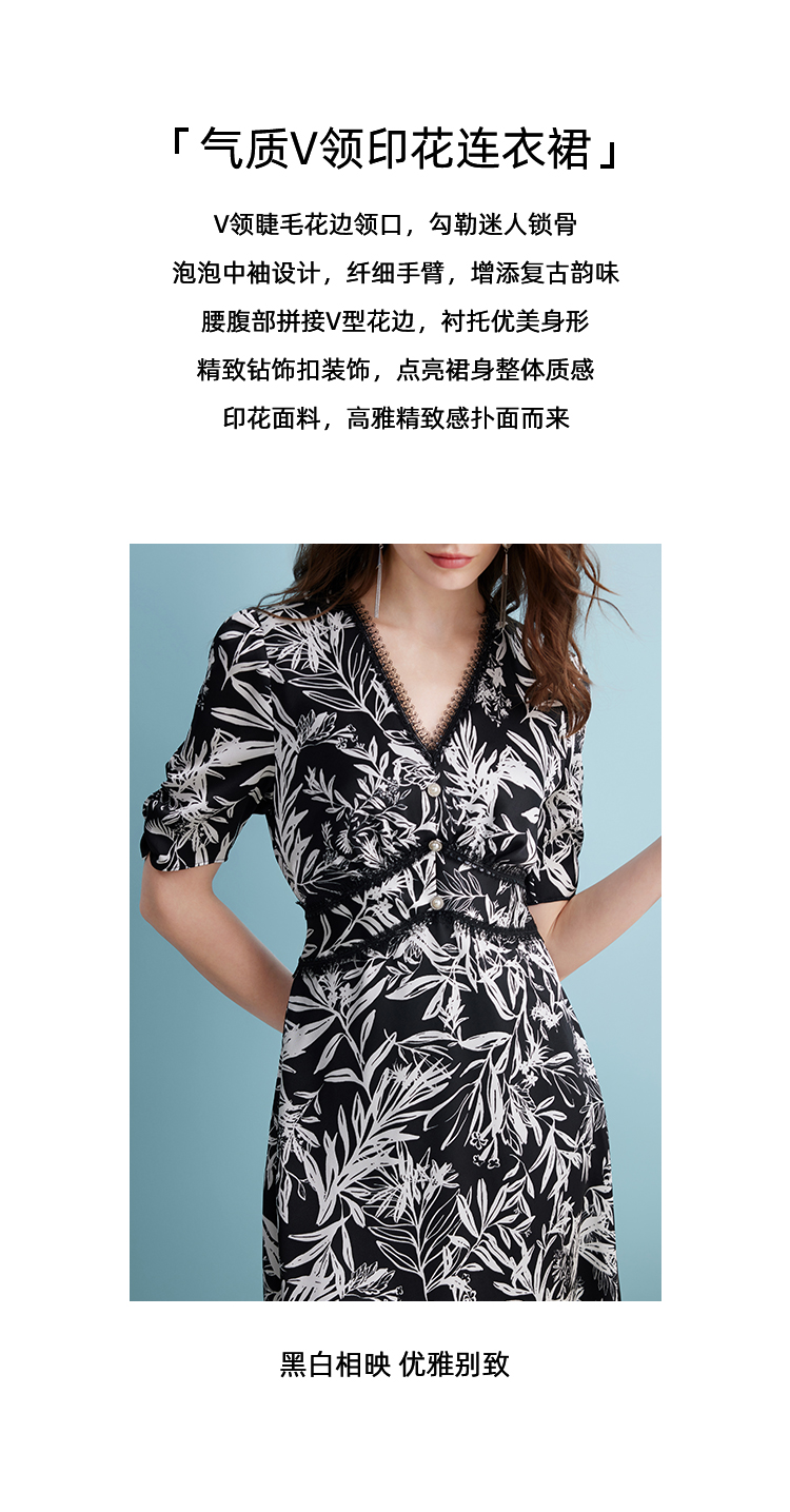 EITIE爱特爱夏款新品V领显瘦高腰舒适印花复古连衣裙7407118