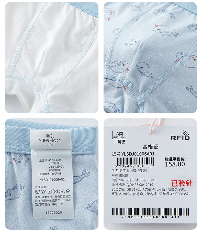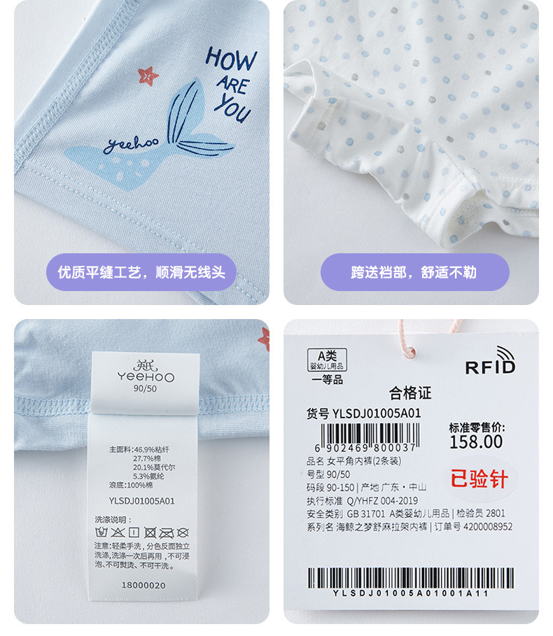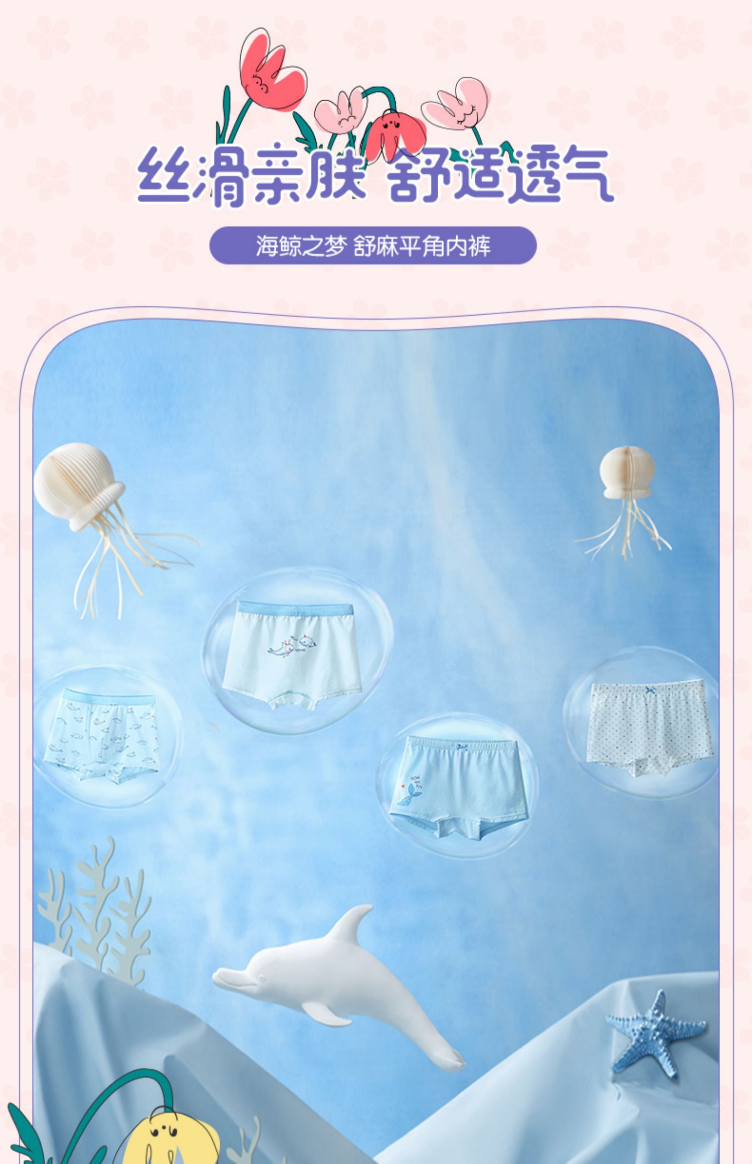 【亲肤舒麻】英氏儿童内裤舒麻四角裤男女宝宝透气平角裤2件装春夏款