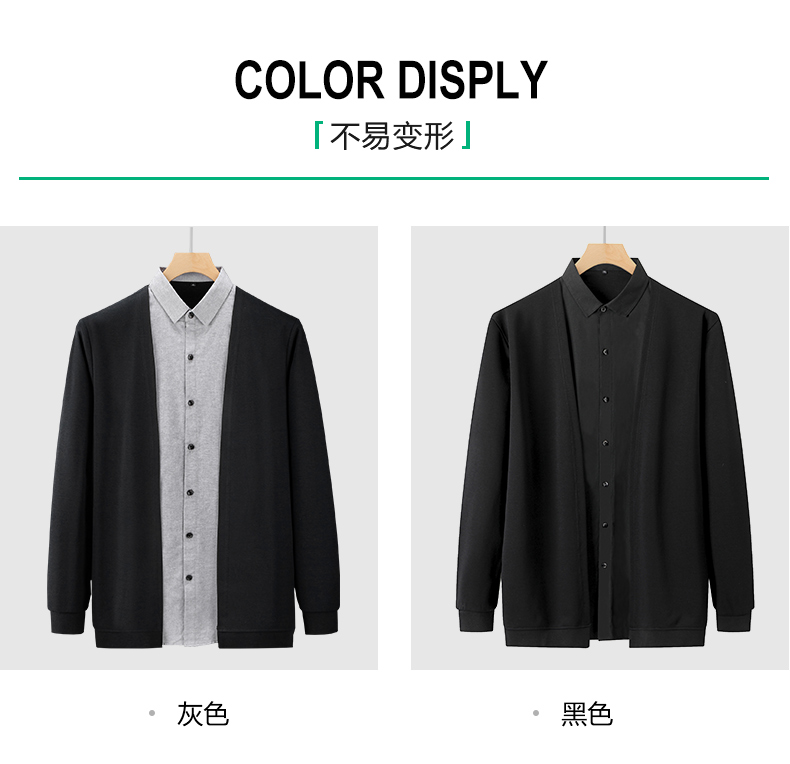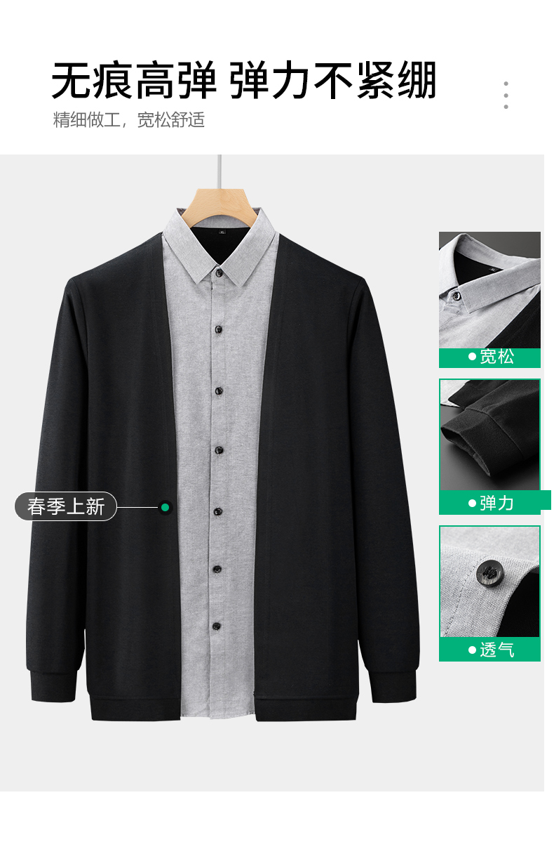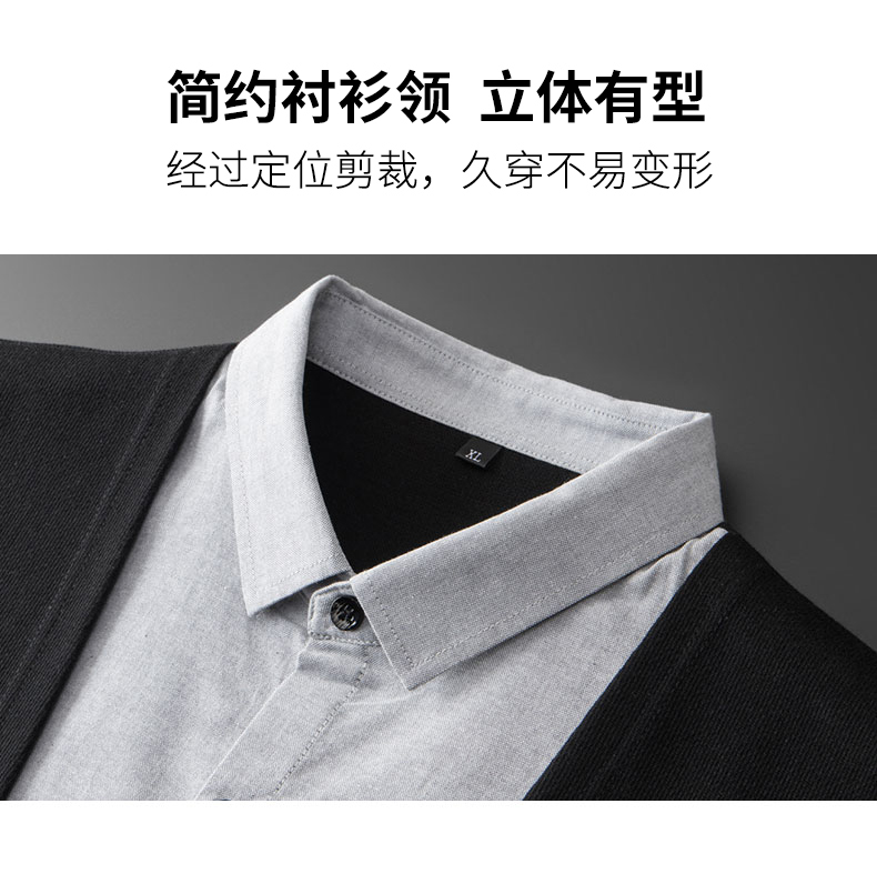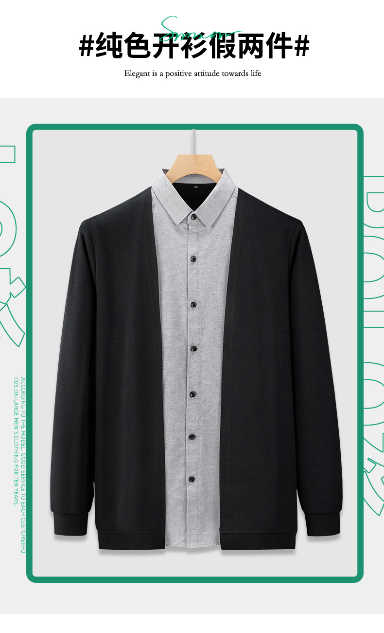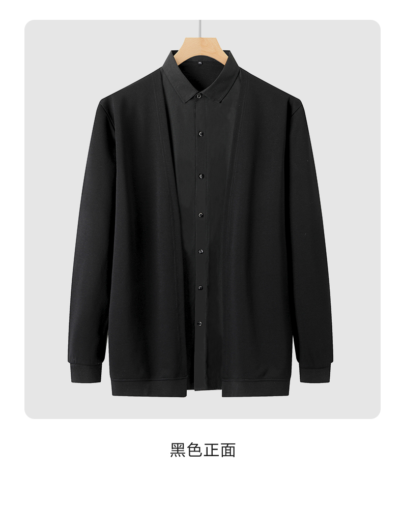 【新款DDA】大依优型大码假两件衬衫男士条纹翻领长袖商务休闲上衣加肥加大胖子