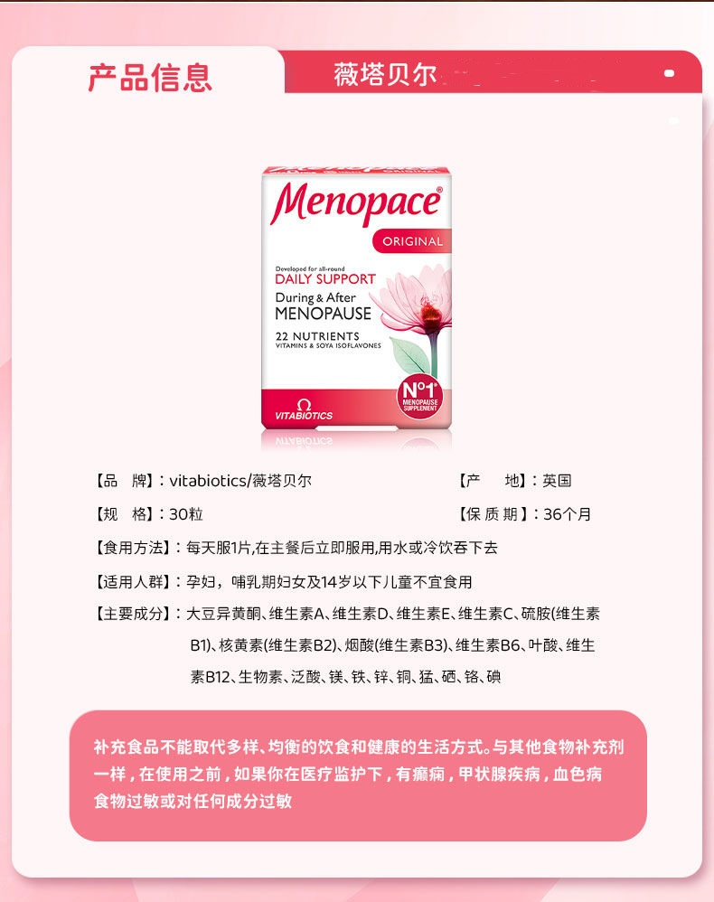 【跨境】英国薇塔贝尔 大豆异黄酮维生素(30片/盒)女性