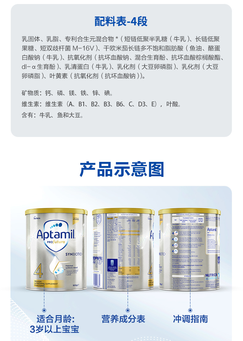 澳洲Aptamil爱他美婴幼儿配方奶粉白金版4段900g
