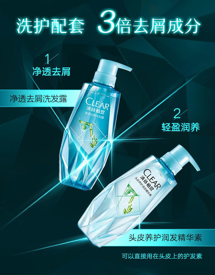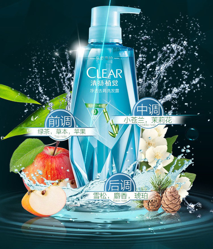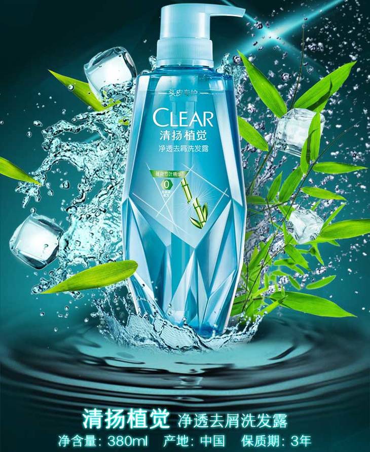 清扬植觉男士净透去屑洗发露380ml