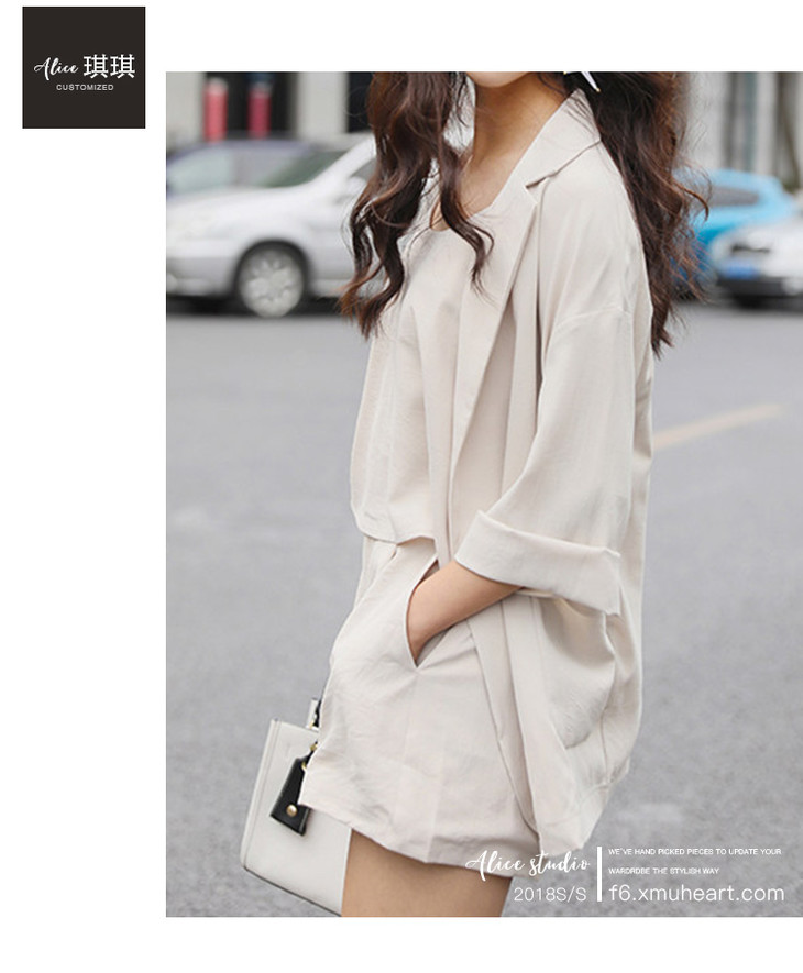 琪琪2018新款时尚韩版西装吊带短裤三件套