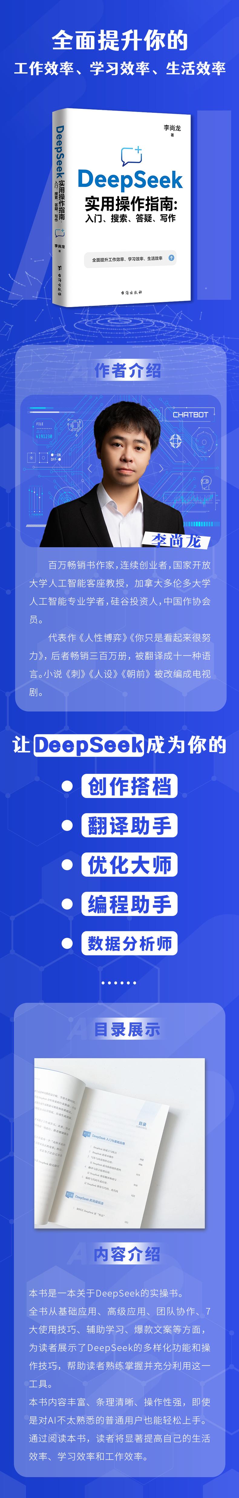 全书从基础应用、高级应用、团队协作、7大使用技巧、辅助学习、爆款文案等方面,为读者展示了DeepSeek的多样化功能和操作技巧,帮助读者熟练掌握并充分利用这一工具。