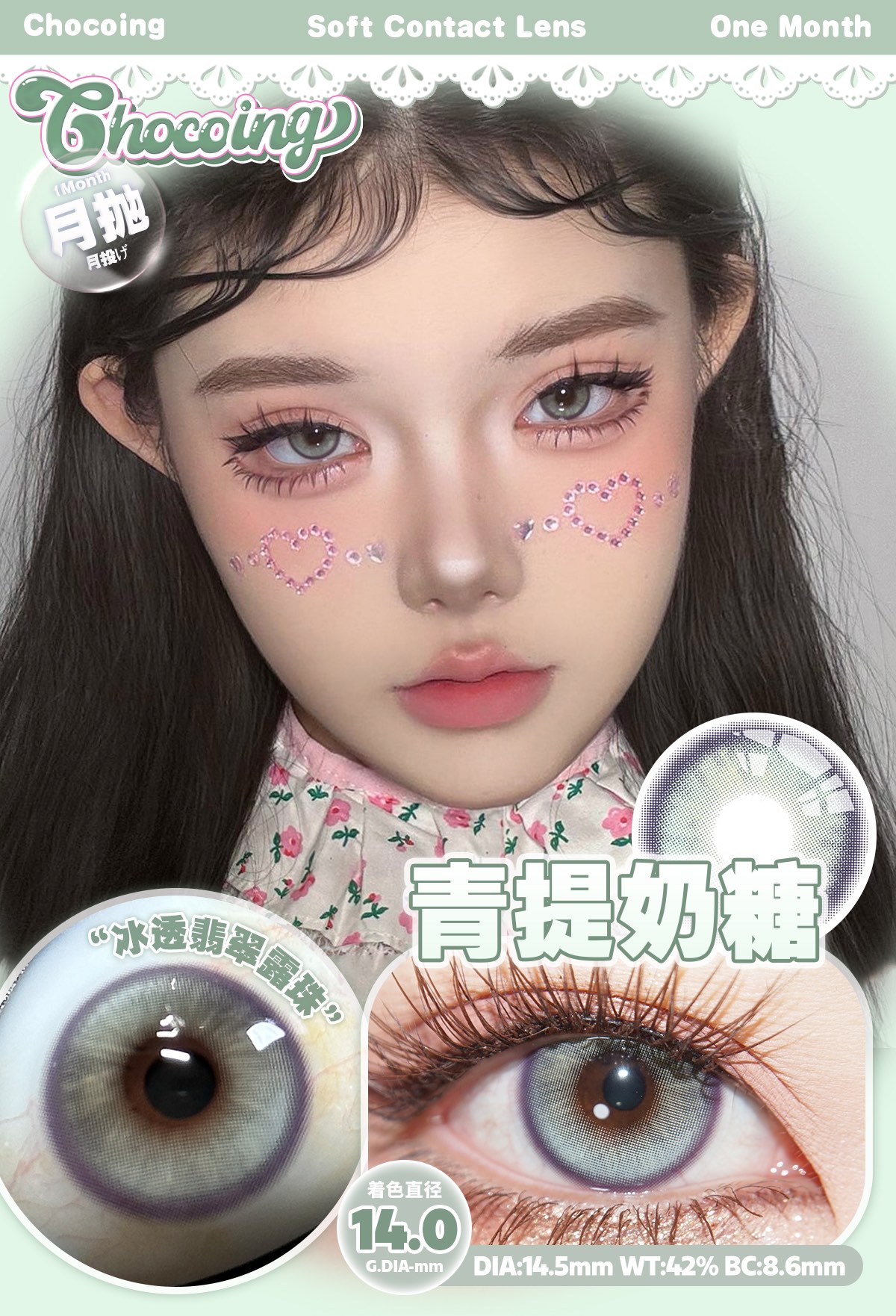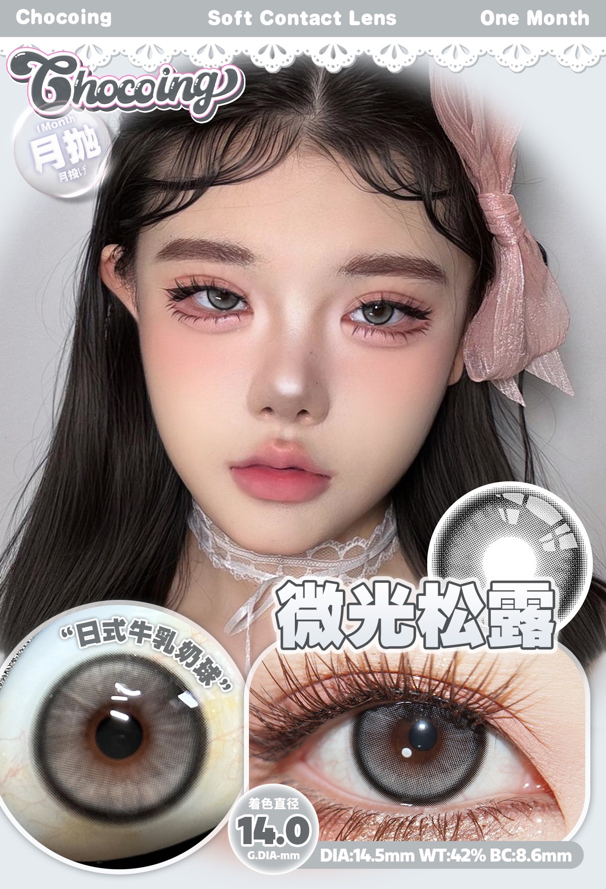 chocoing月抛 糖霜珍珠/浪漫粉酒/莫奈奶昔/青提奶糖/微光松露 14.5mm 一副2片 棕粉紫绿黑