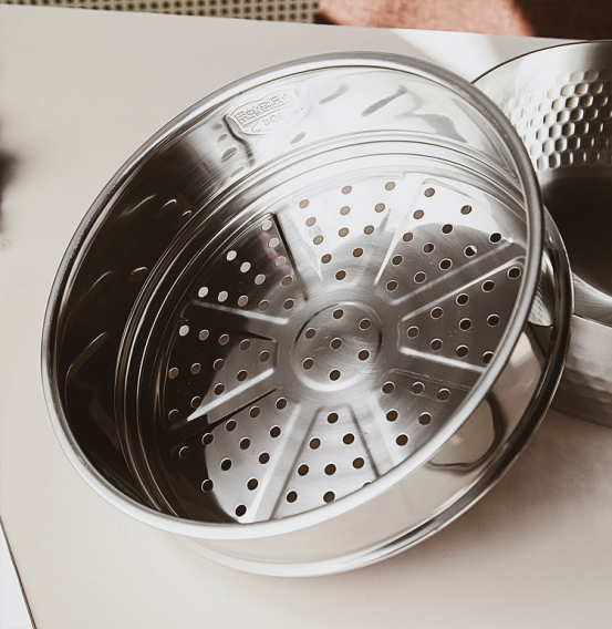 316L 医用级别不锈钢,坚固耐用超安心 这款蒸锅采用 316L 医用级别不锈钢材质,这可是品质的保证! 它具有超强的抗酸碱、耐腐蚀性能 不管是蒸酸性的食材,还是碱性的食物,都不用担心会被腐蚀。 蒸格采用304材质