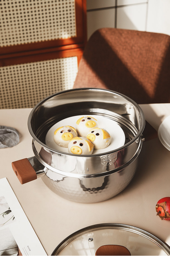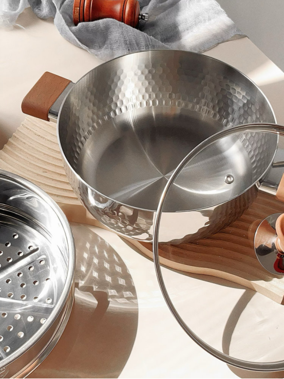 多功能合一,满足多样烹饪需求 一个不锈钢雪平蒸锅,简直就是多个锅具的集合体! 它可以当作小蒸锅,用来蒸包子、蒸馒头、蒸鱼,都不在话下; 还能作为辅食锅,给宝宝制作营养丰富的辅食; 家里有宝宝的,它还能用来给奶瓶消毒,保障宝宝的健康; 炖煮各种汤品、甜品,它也能完美胜任; 甚至偶尔想炸个小食,它也能充当油炸锅。 有了它,厨房的锅具瞬间可以精简 一个锅满足多种烹饪需求,简直是厨房空间的 “拯救者”,实用性直接拉满💯