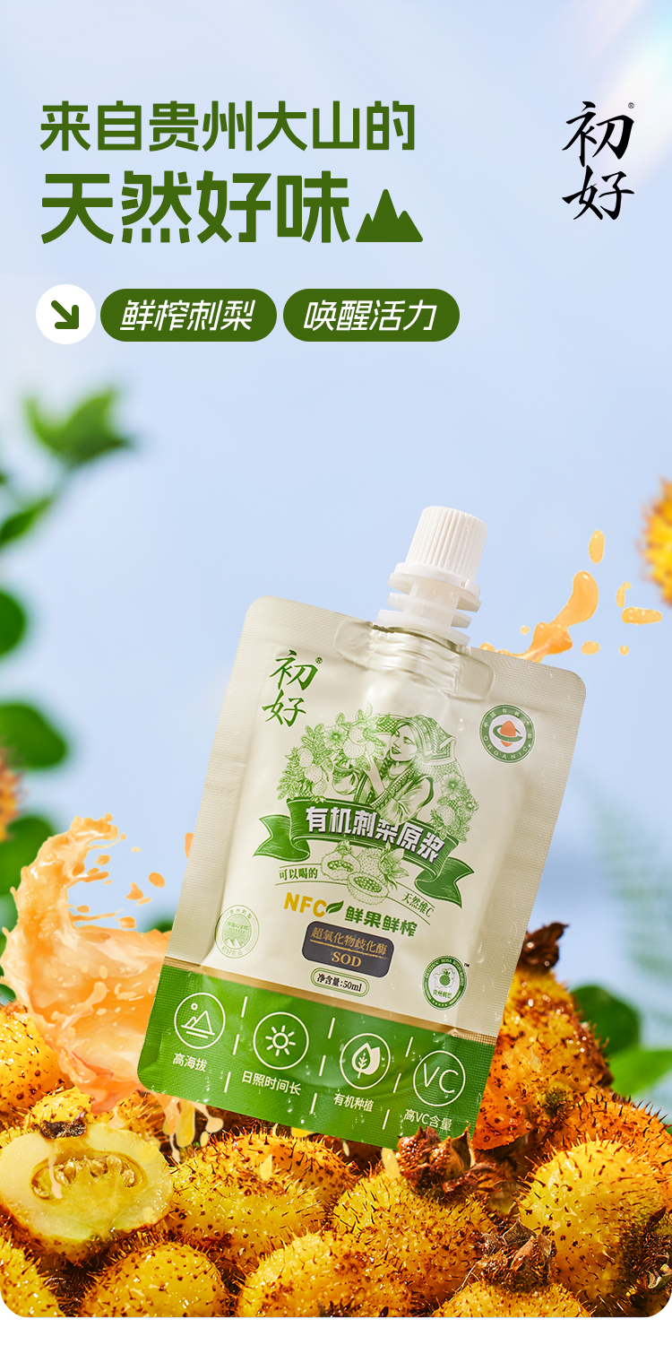 ⁴【三王圣果贵州有机刺梨汁】纯刺梨原浆&益生元刺梨汁 VC+VP+SOD 50ML/袋 YC04-CR-XGSC
