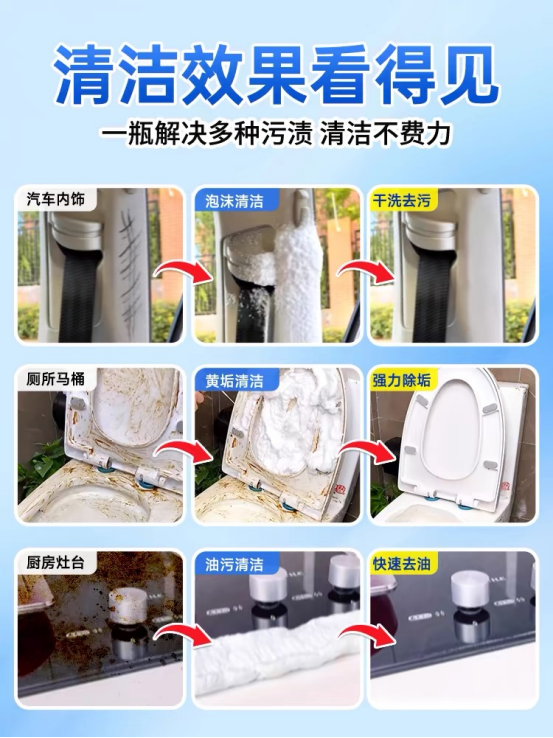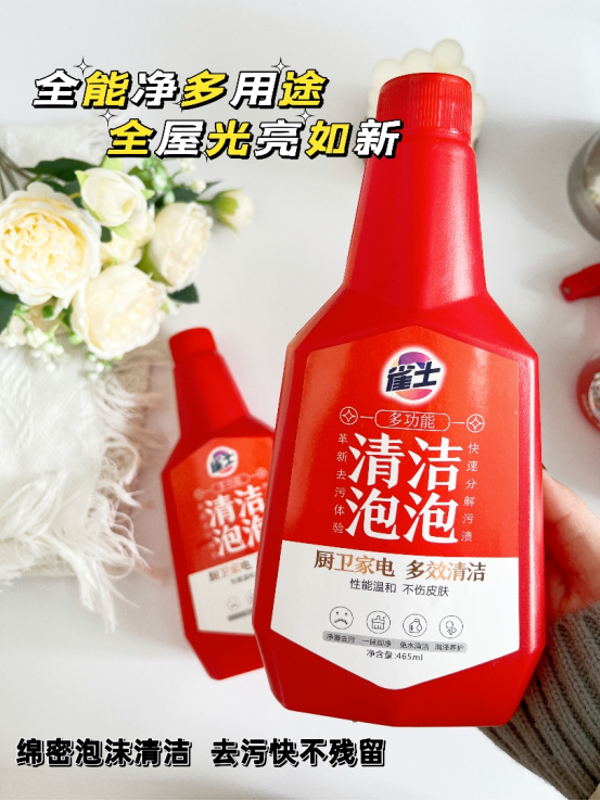 一瓶搞定全屋清洁简直不要太棒了 清洁厨房的时候,那些顽固的油污总是让人头疼。 但是有了这款多功能清洁剂,只需要轻轻一喷,稍等片刻,再用抹布一擦, 油污就消失得无影无踪,炉灶、抽油烟机、水槽都能变得干干净净,就像新的一样。