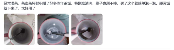 🔸杯子里的陈年老茶垢 蛮力搓洗会伤害内胆涂层 你需要更专业的器皿清洗黑科技! 今天给大家推荐的是这款 💫雀士泡泡粉💫 使用非常方便 只要加水泡一泡,杯子就洗干净了 懒星人惊呼:太干净太省事了🤩