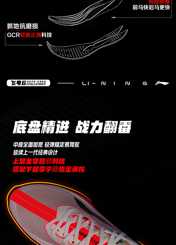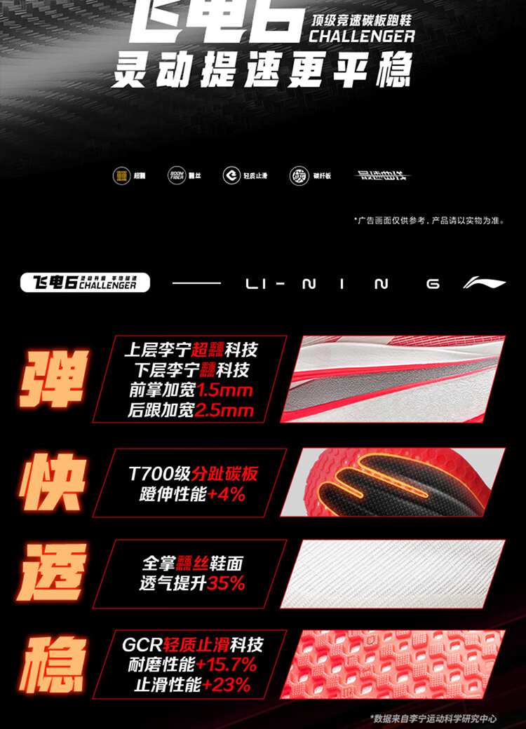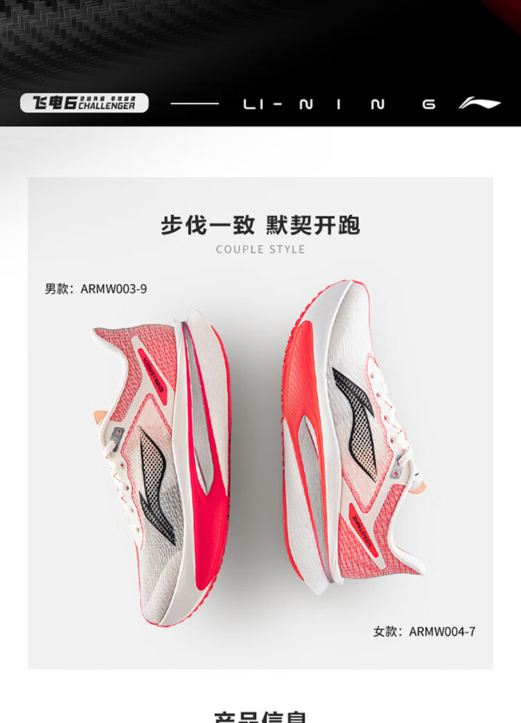 李宁 飞电6 CHALLENGER 女款beng丝轻量25新款透气竞速比赛跑步运动鞋