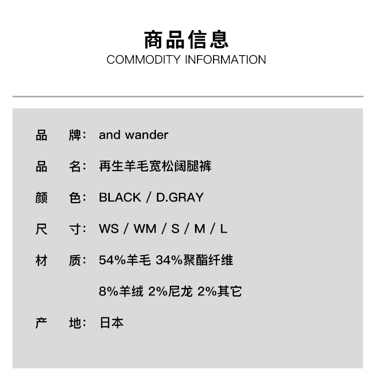 and wander REWOOL tweed wide 男女中性款再生羊毛宽松阔腿裤