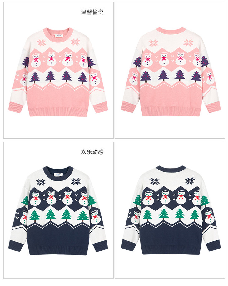 水孩儿男女童装2021秋冬新款儿童毛衣中大童时尚圣诞雪人针织线衣