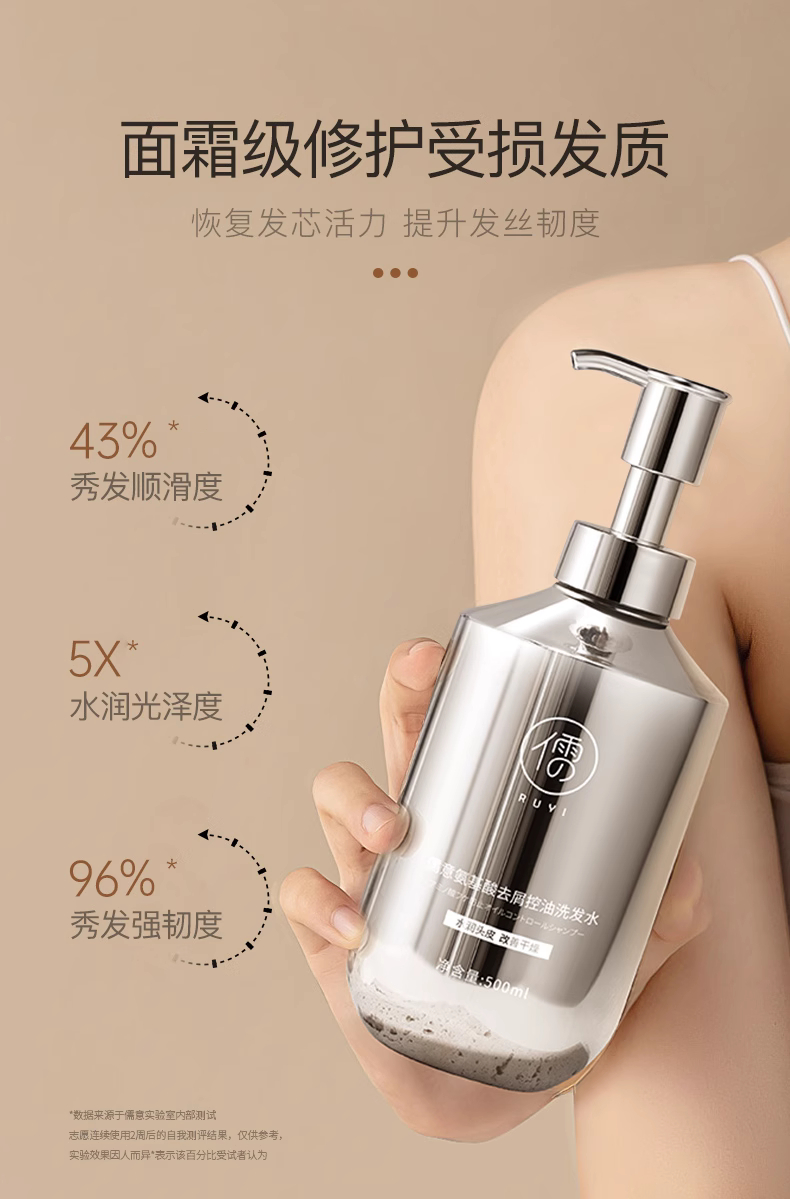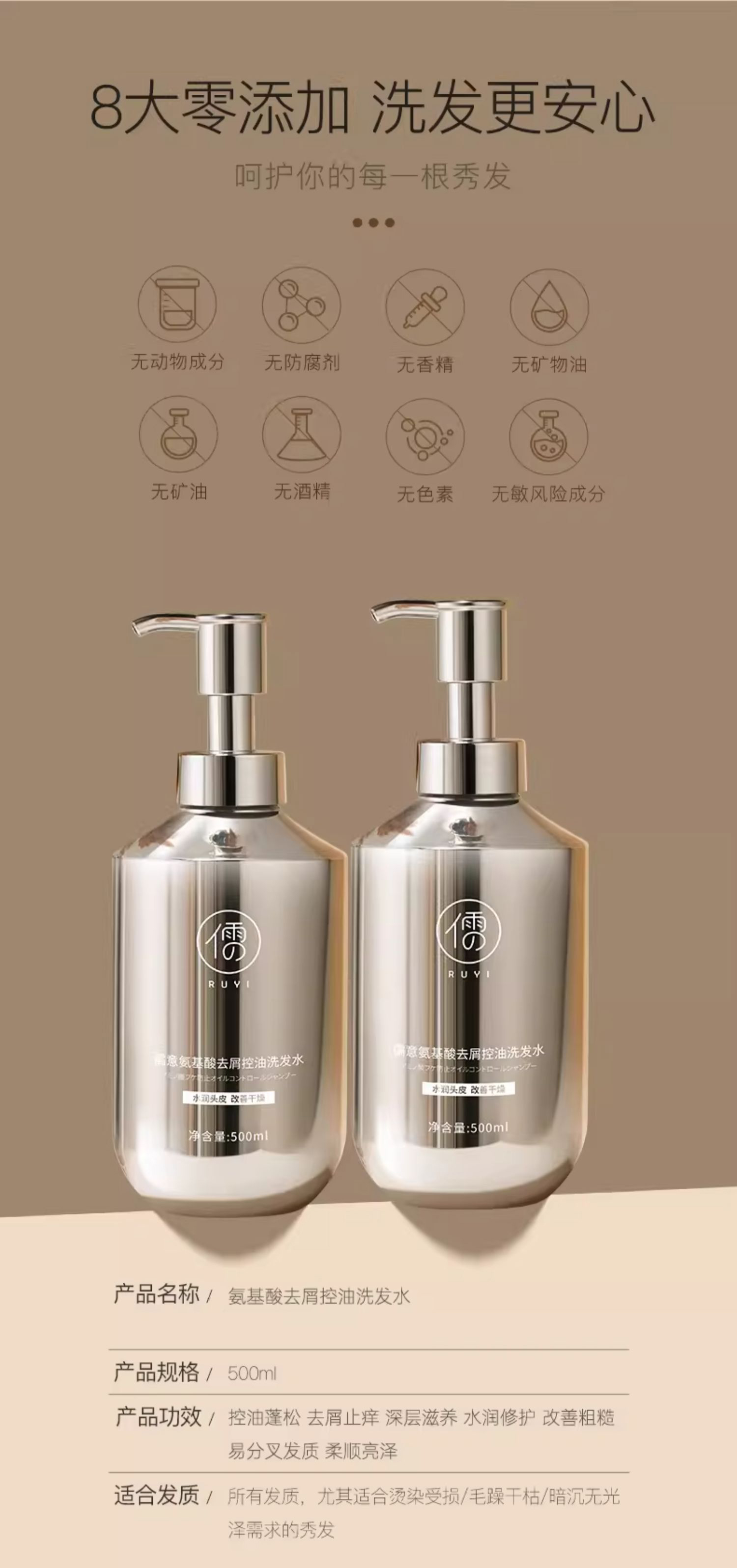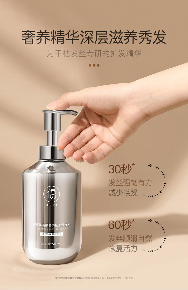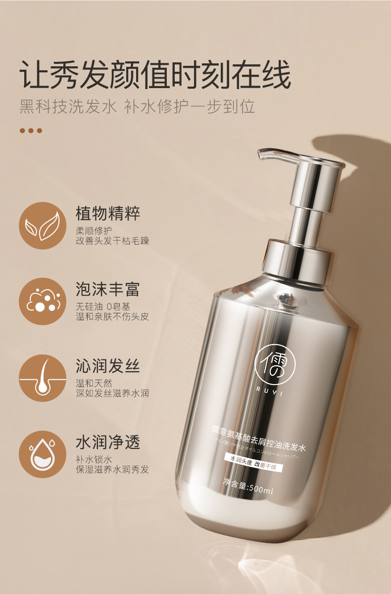 【2瓶仅需59元】儒意氨基酸去屑控油洗发水 面霜级修护 三重补水光动力 让秀发一梳到底 500ml/瓶