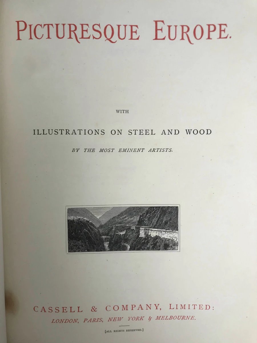 约19世纪后期 欧洲风景图集(卷4) 数百幅版画插图 真皮精装大16开