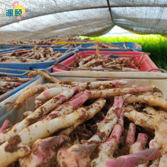 刚从土里里面挖出的红芽仔姜还带着湿润的砂壤土 土,芽头泛着生姜的紫红色,浓浓的姜香在空气中 都弥漫着,让人忍不住想多闻几下,大吃一口☘️
