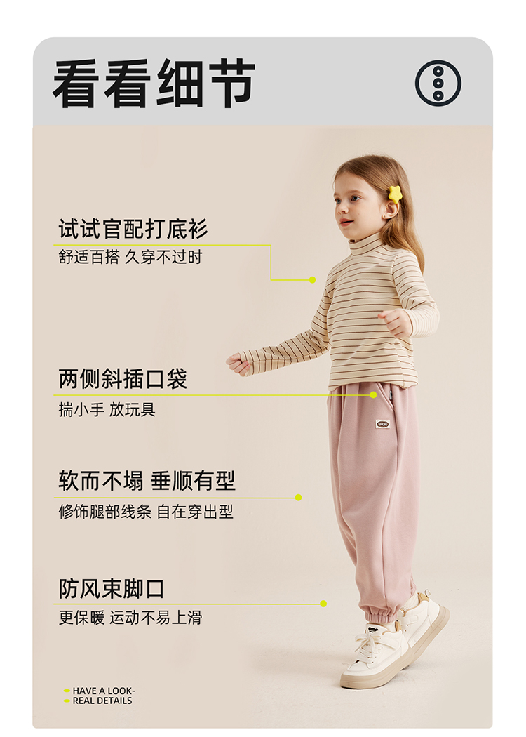 fx-【暖暖不倒绒】儿童徽标休闲卫裤PQK2338