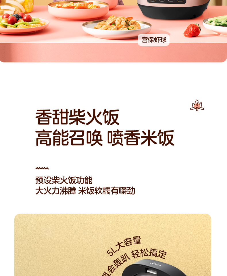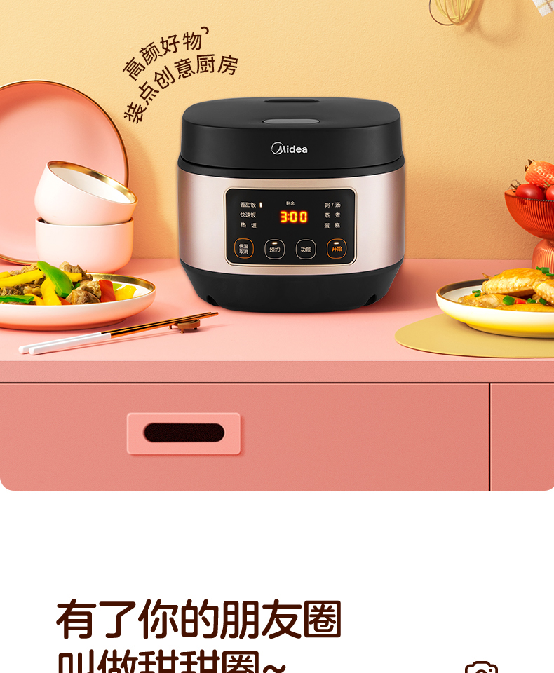 美的(Midea)电饭煲 家用底盘加热智能自动 预约多功能快速饭煲汤电饭煲 煮粥蛋糕 AFB5062R