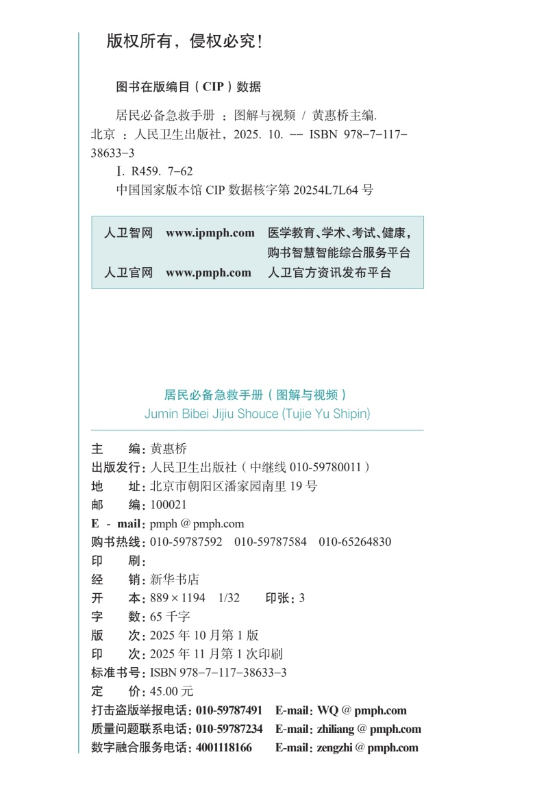书名:居民必备急救手册(图解与视频)
