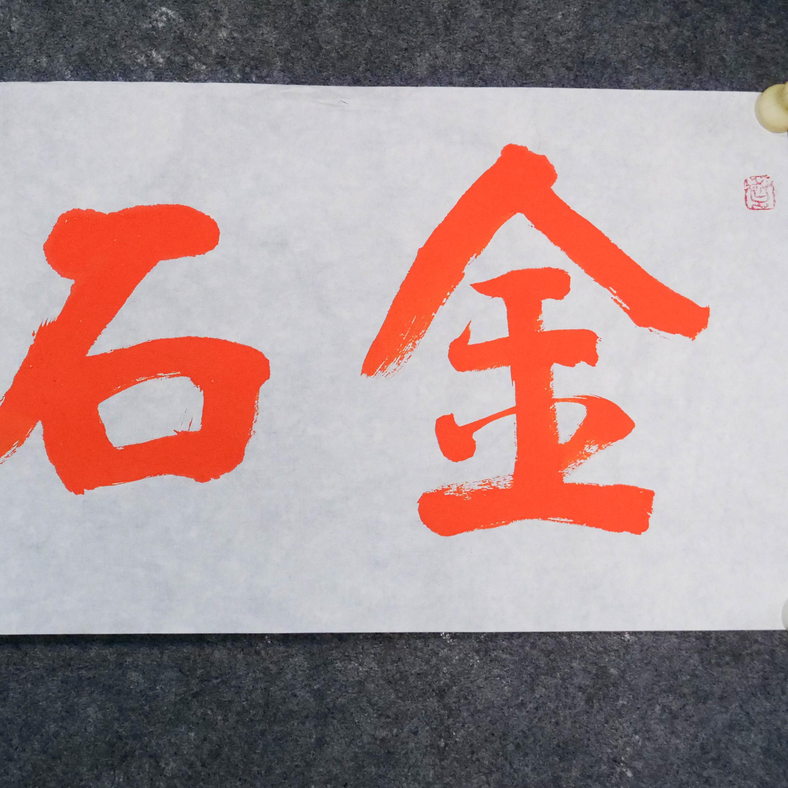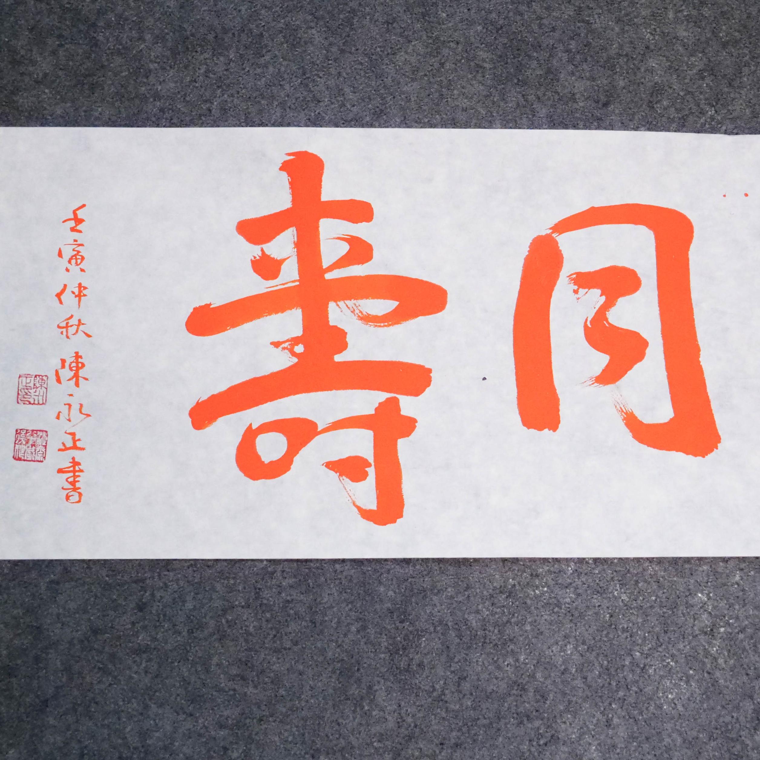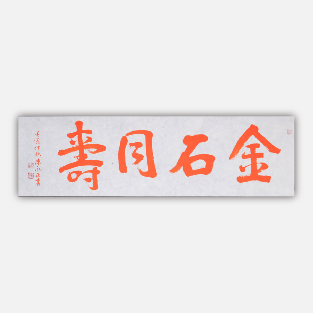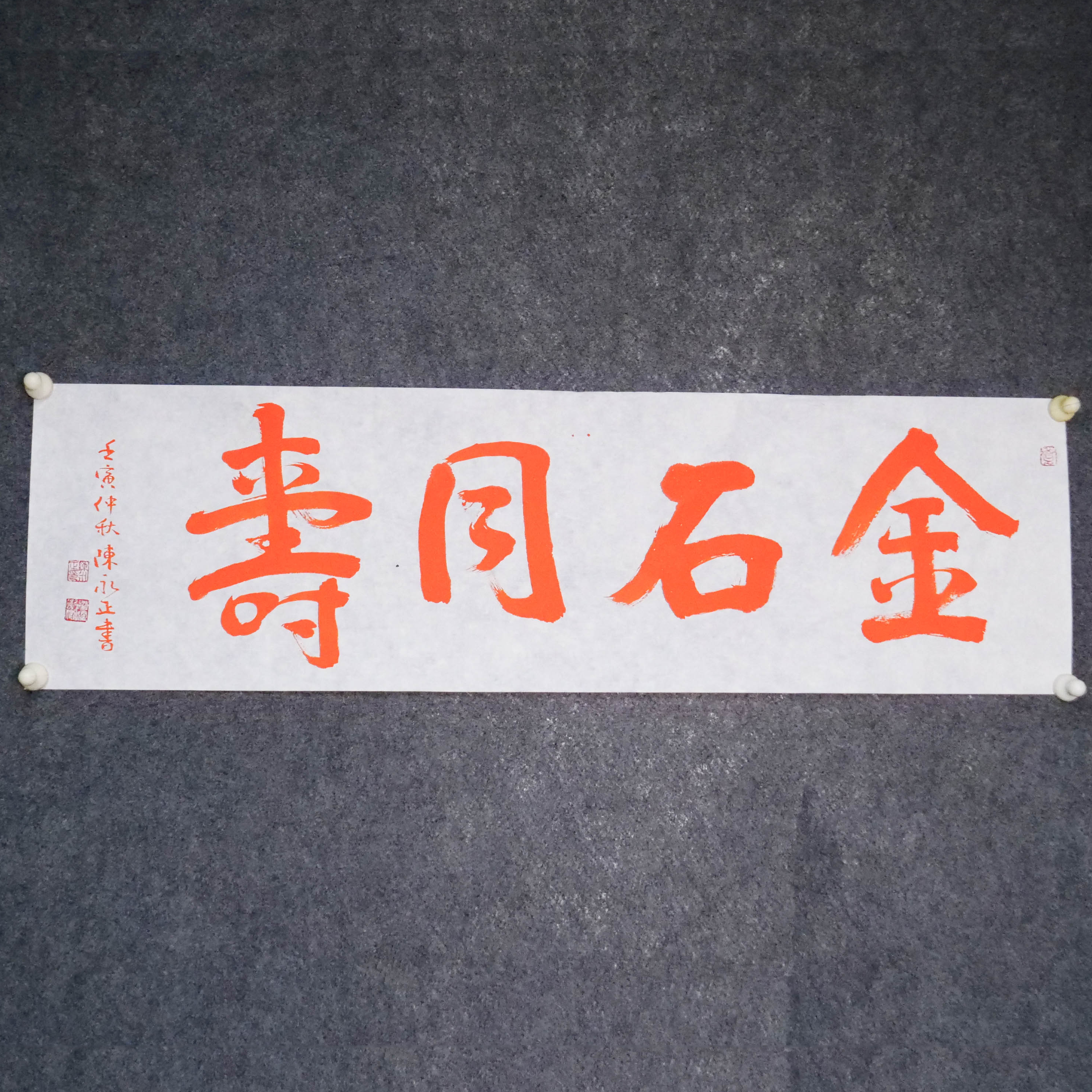陈永正《金石同寿》书法原作28CM*96CM 手写宣纸朱砂吉语