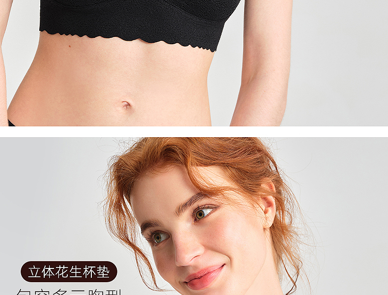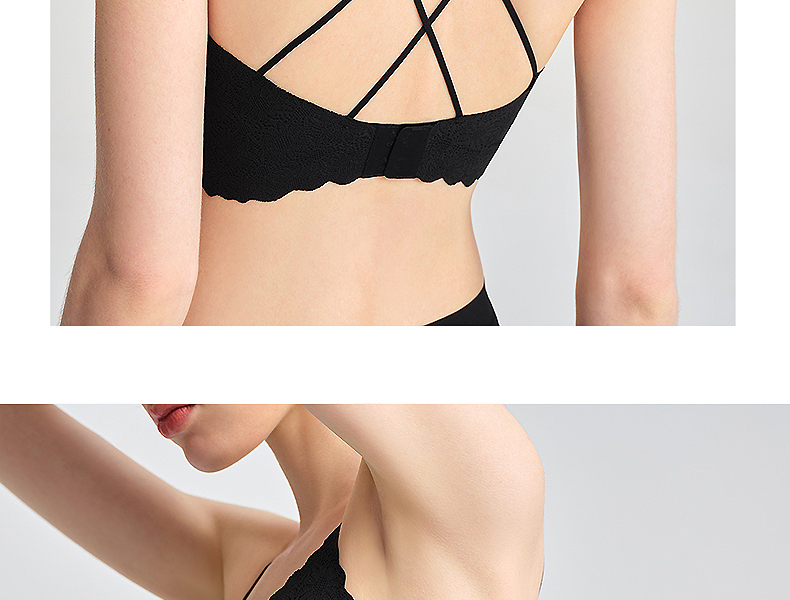 好奇蜜斯美背内衣女无痕无钢圈文胸套装显胸小法式一片式胸罩舒适 莫琳
