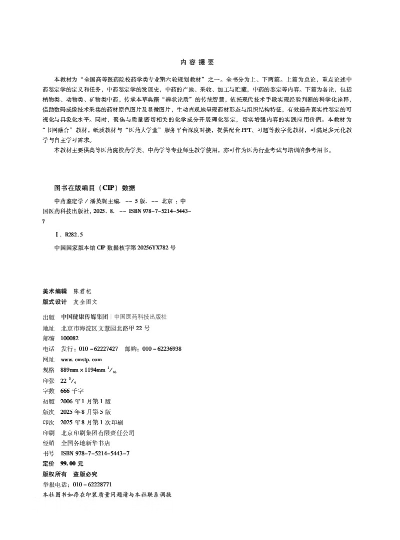 中药鉴定学 第5版 全国高等医药院校药学类专业第六轮规划教材 潘英妮 供药学类 中药学等专业用 9787521454437中国医药科技出版社