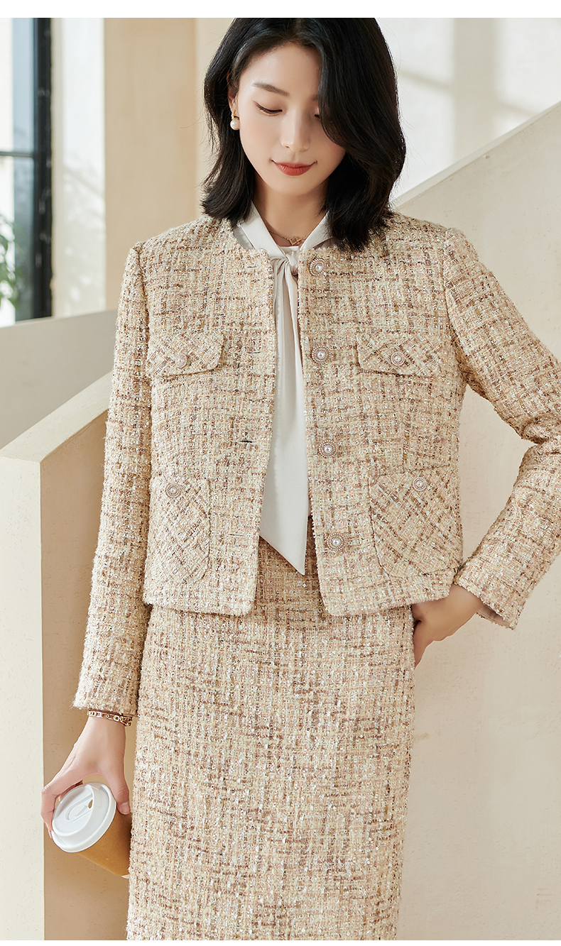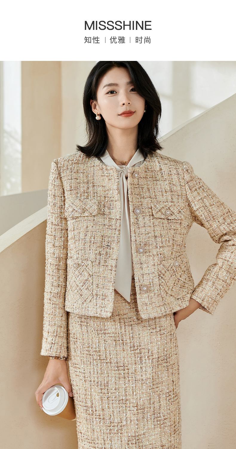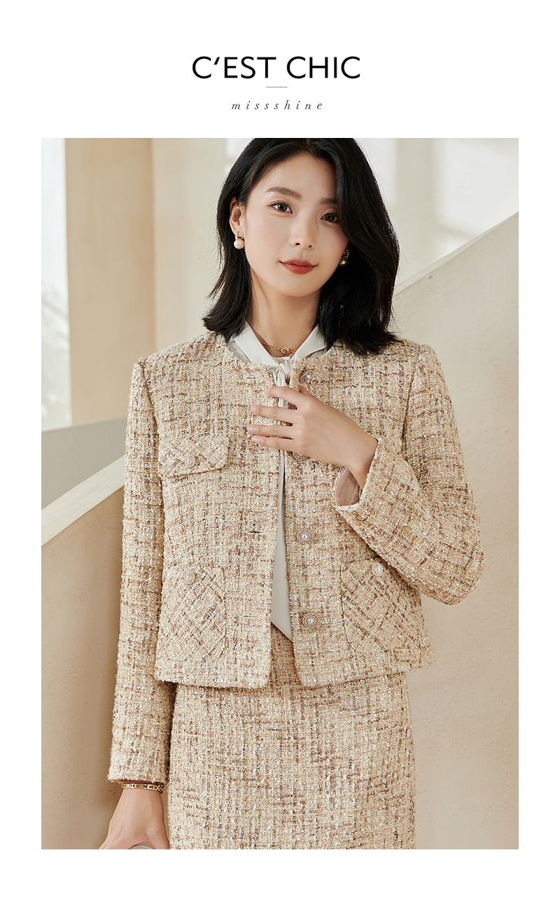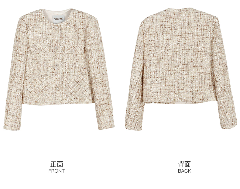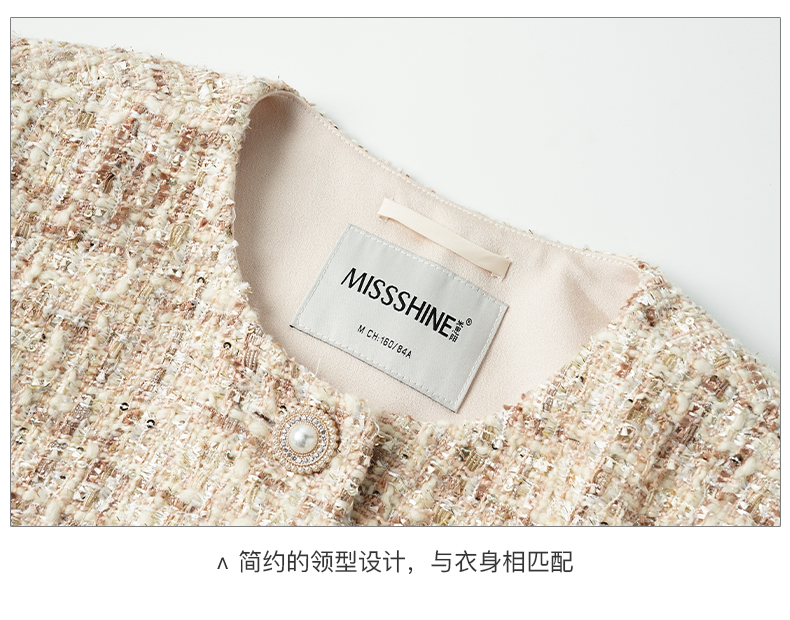 剩M/XL/XXL 米思阳2026春季新款小香风粗花呢短外套修身亮片高级感上衣厚0022