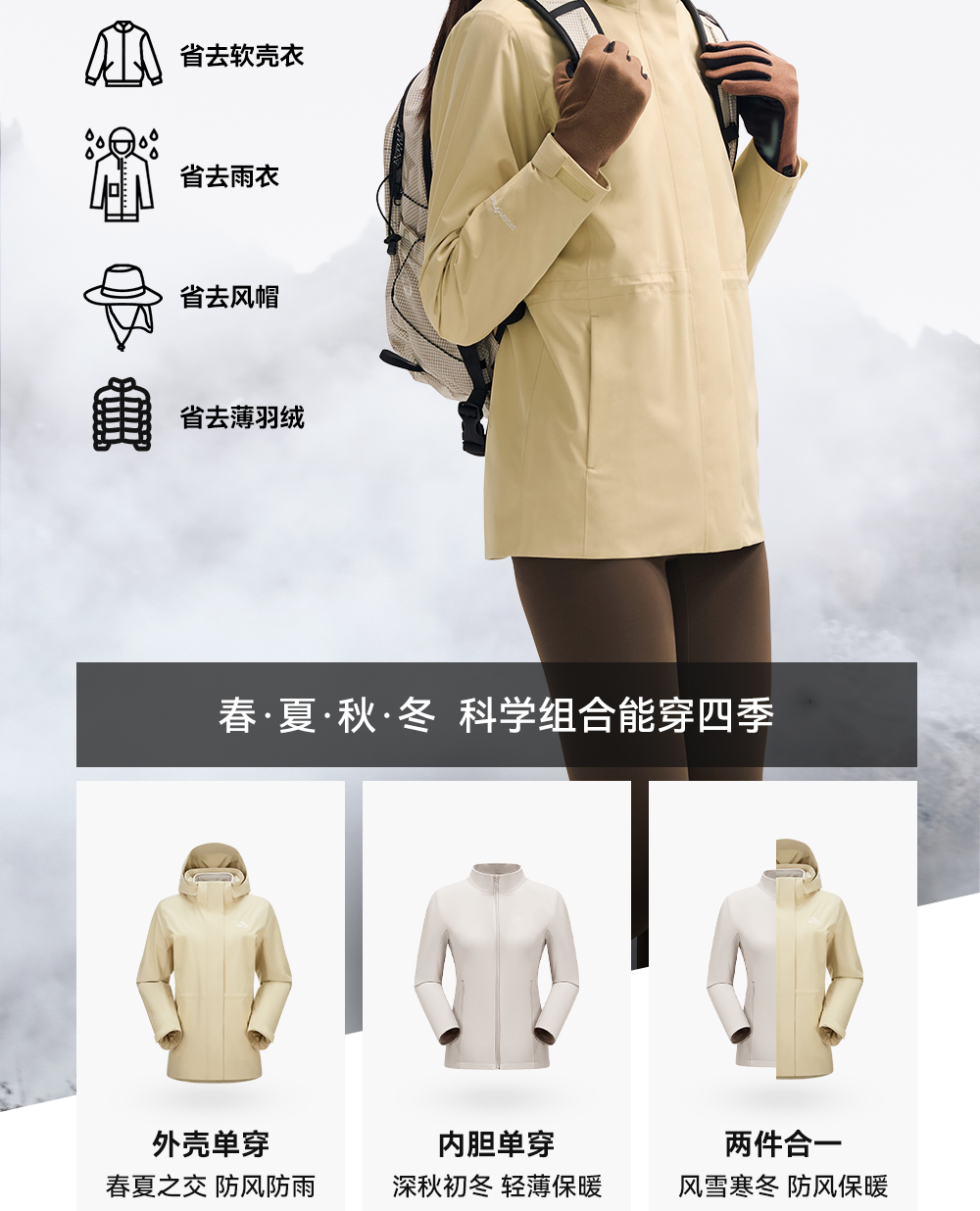伯希和户外三合一冲锋衣女2025新款软壳内胆徒步登山外套收腰上衣